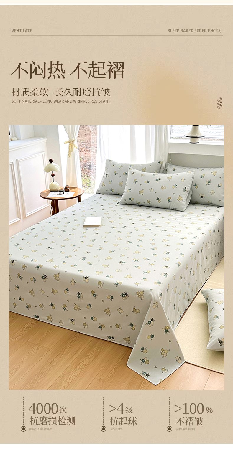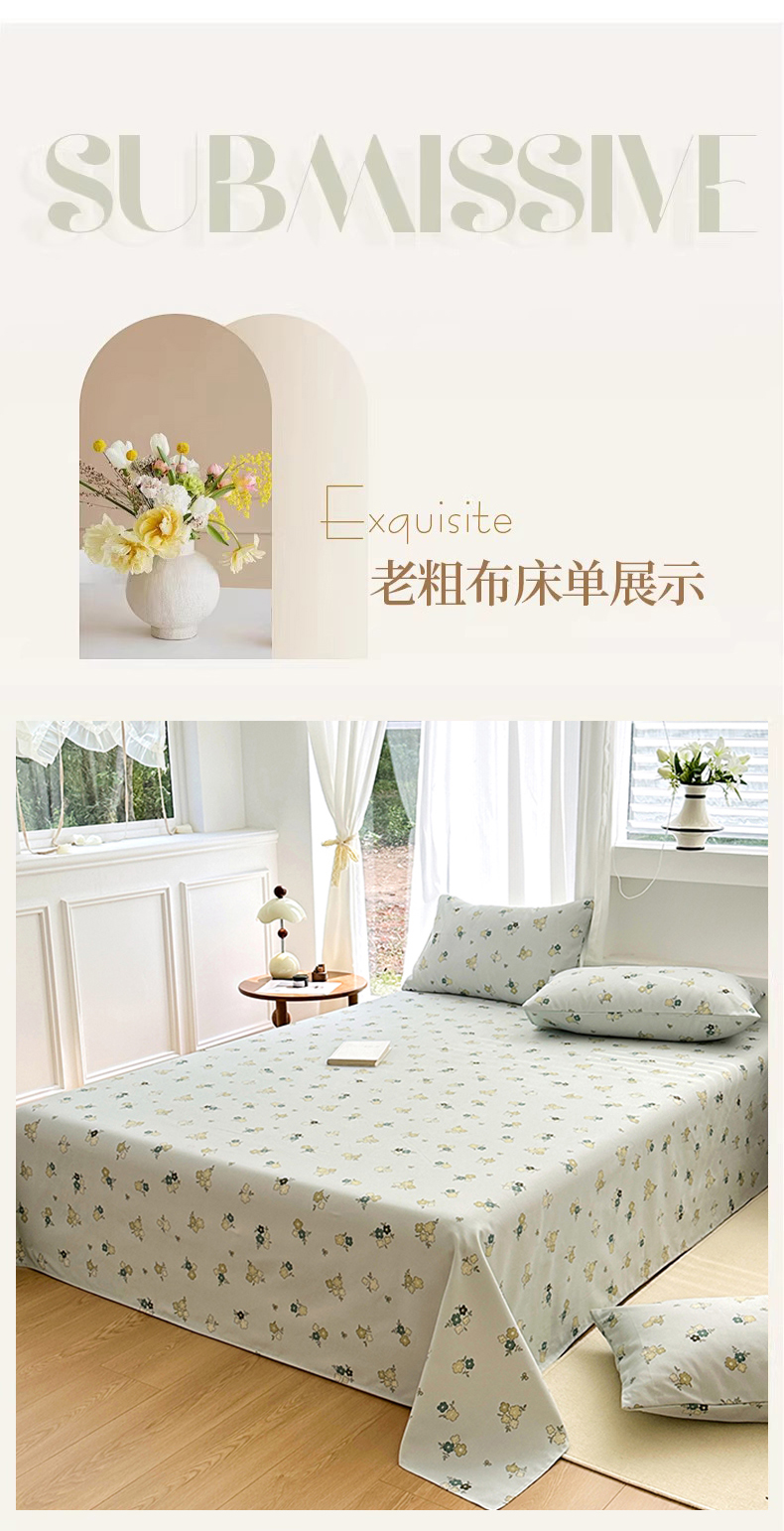 • 91家纺网 家纺一手货源 找家纺 家贝爱2025原棉印花老粗布床单凉席三件套 繁花静雅