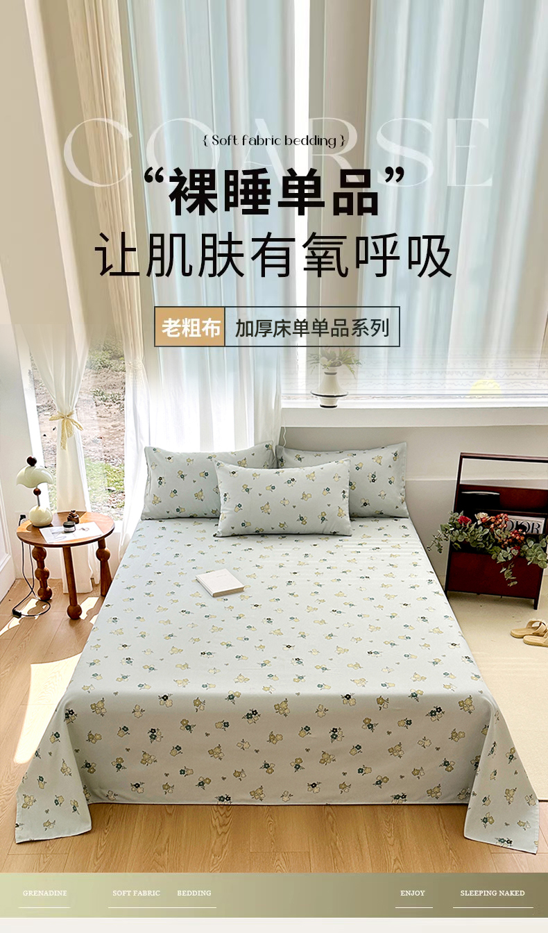 • 91家纺网 家纺一手货源 找家纺 (总)家贝爱2025原棉印花老粗布床单凉席三件套,盎然春色,繁花静雅,富贵凝香,简格小花,流年彩梦,纳吉竖条,瑞格聚福,仙草绮梦,熊影福泽,竹林意趣