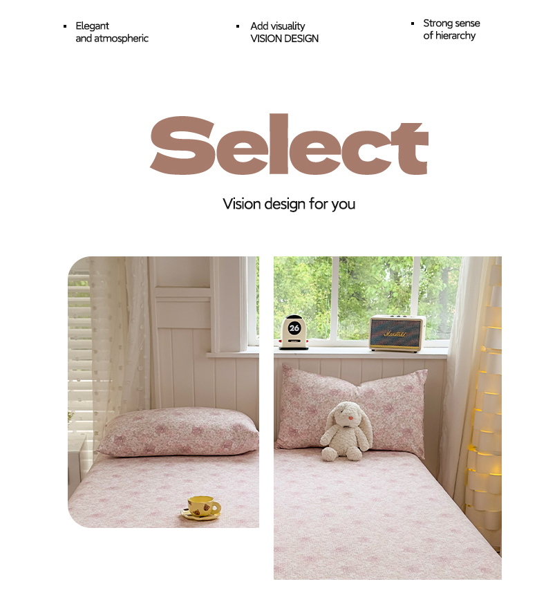 • 91家纺网 家纺一手货源 找家纺 (总)丝芙妮家居(原乐视家纺) 2026新款A类亲肤云朵棉夹棉保暖床笠,布丁小熊,草莓微甜,海棠花眠,可爱萌宠,蓝萱花町,漫游花境,墨色花园,南岛乐园,甜品狗狗,甜心小兔,晚安小狗,午后时光