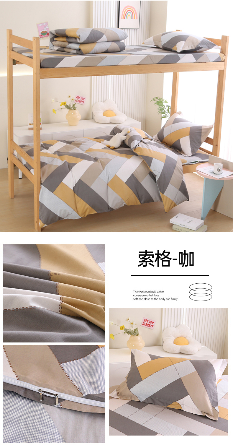 当前位置: 91家纺网 > 商品网购 > 床品套件 > 多件套 > 多件套 > 凯森家纺 2025新款133x72全棉三件套床套款学生被套宿舍寝室垫套款六件套 索格-咖
