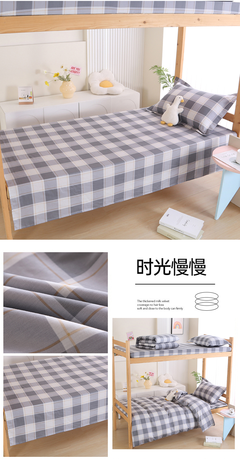 凯森家纺 新款全棉13372学生床单三件套直播代发 全棉学生款三件套 时光慢慢-灰