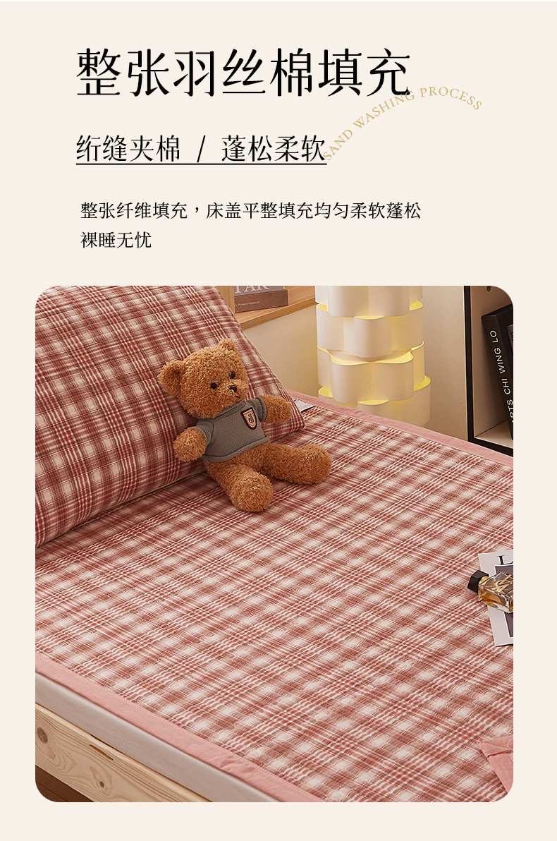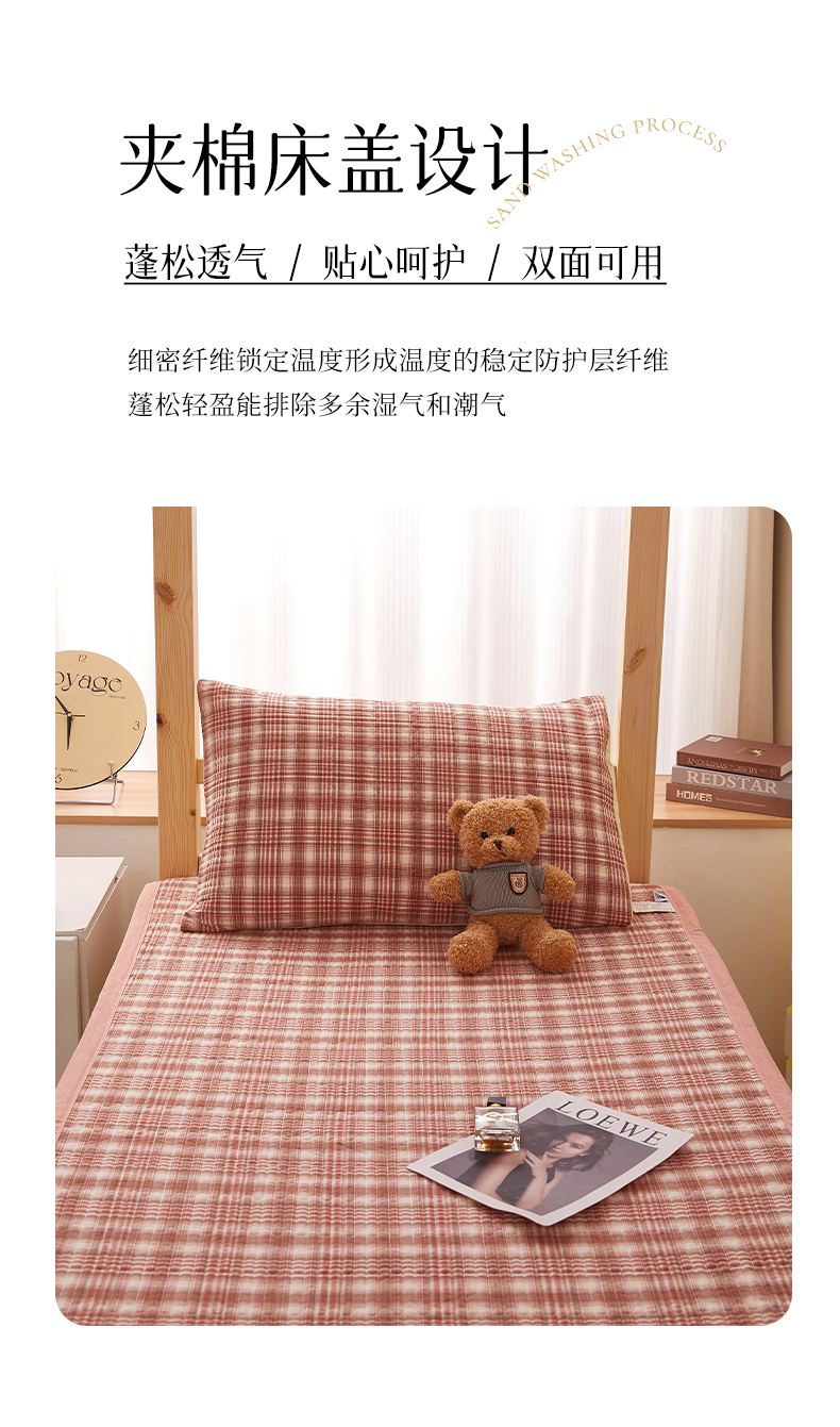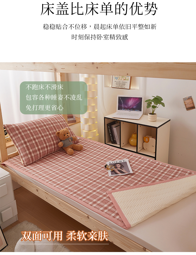 商品名称:(总)梦精灵家纺 2025新款全棉色织水洗棉四件套纯棉床盖被套罩枕套学生三件套宿舍单人床-床盖款