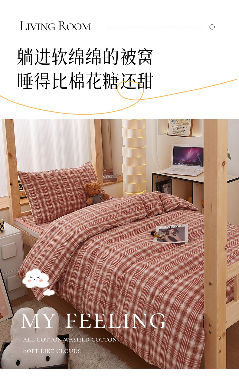 (总)梦精灵家纺 2025新款全棉色织水洗棉四件套纯棉床盖被套罩枕套学生三件套宿舍单人床-床盖款