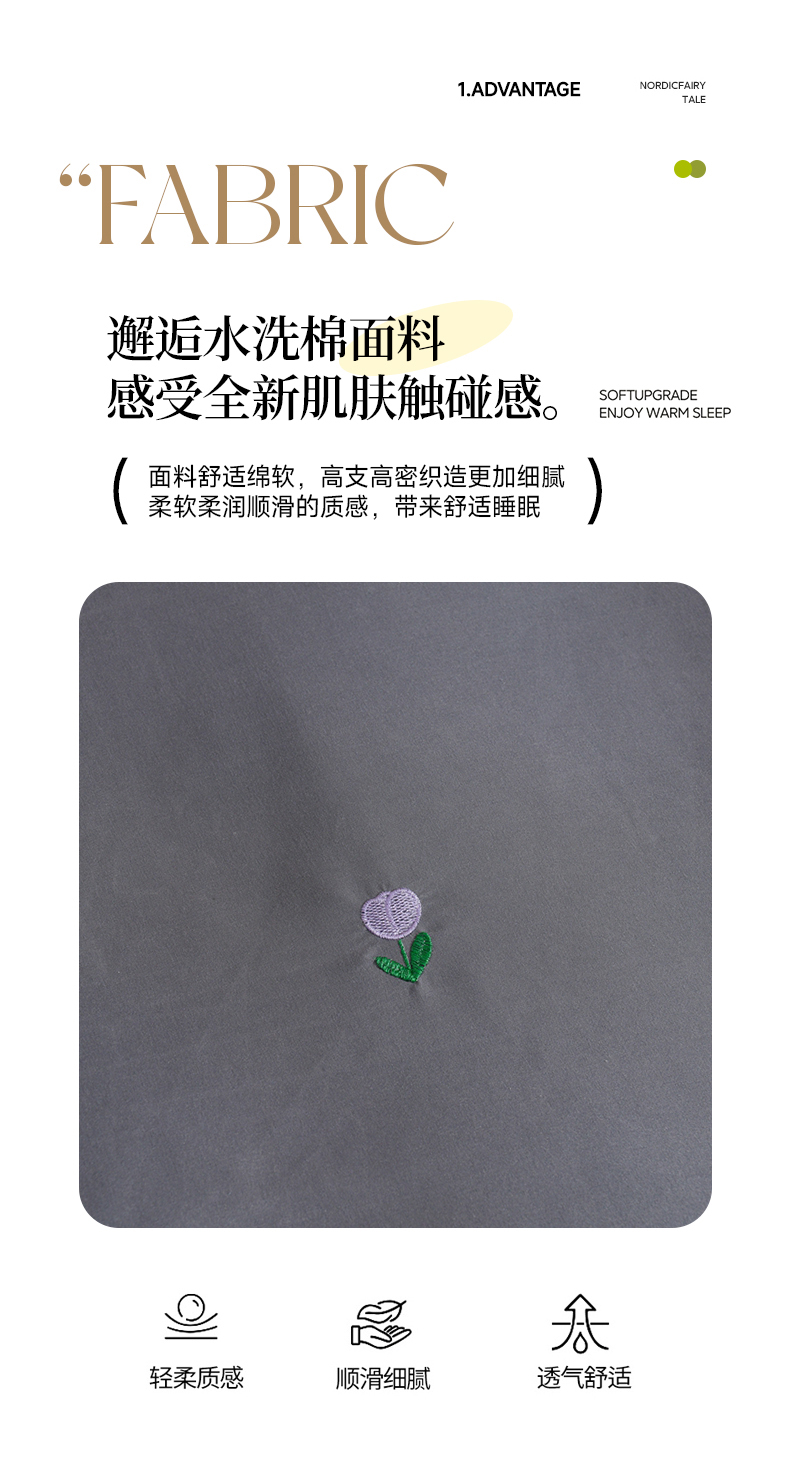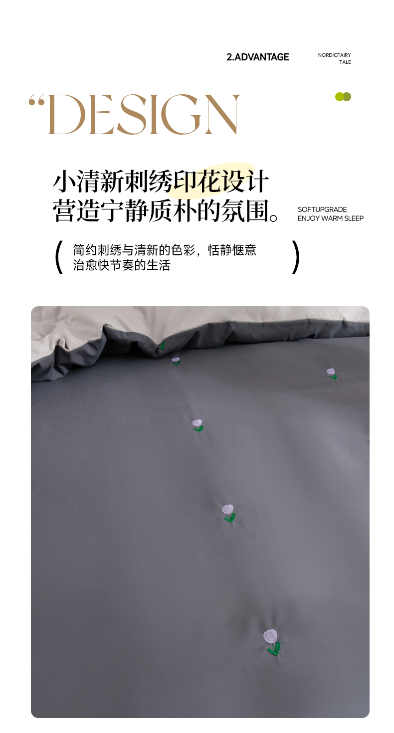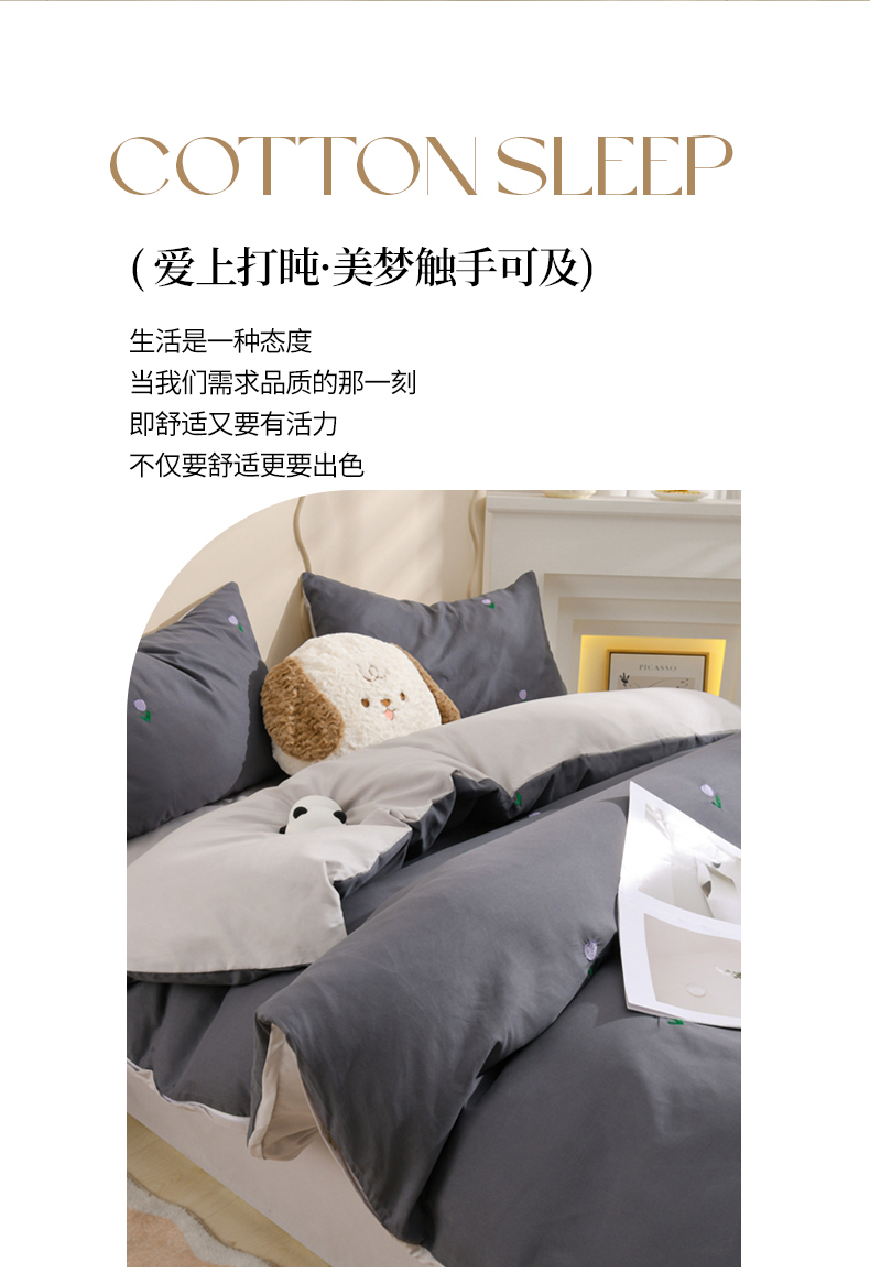 当前位置: 91家纺网 > 商品网购 > 床品套件 > 四件套 > 水洗棉四件套 > 推推家纺 2025新款刺绣水洗棉小清新四件套 郁金香-深灰+浅灰