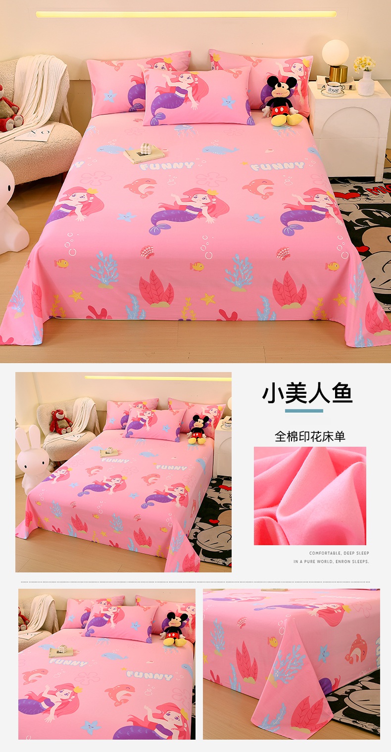 (总)金鑫汇家纺 2026新款全棉印花小清新单品床单系列-可露丽,海盐可露丽,浅咖可露丽,浅绿可露丽,月下花影-桔,月下花影-蓝,月下花影-绿