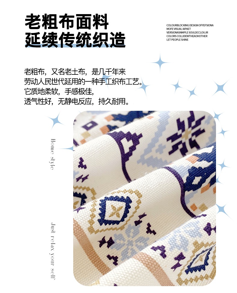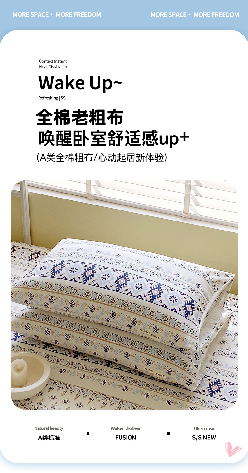 商品名称:金鑫汇家纺 2025年新款百分百全棉老粗布全棉加厚加密高克重单品枕套(花型更好卖,面料更厚实,自带凉感) 波西米亚