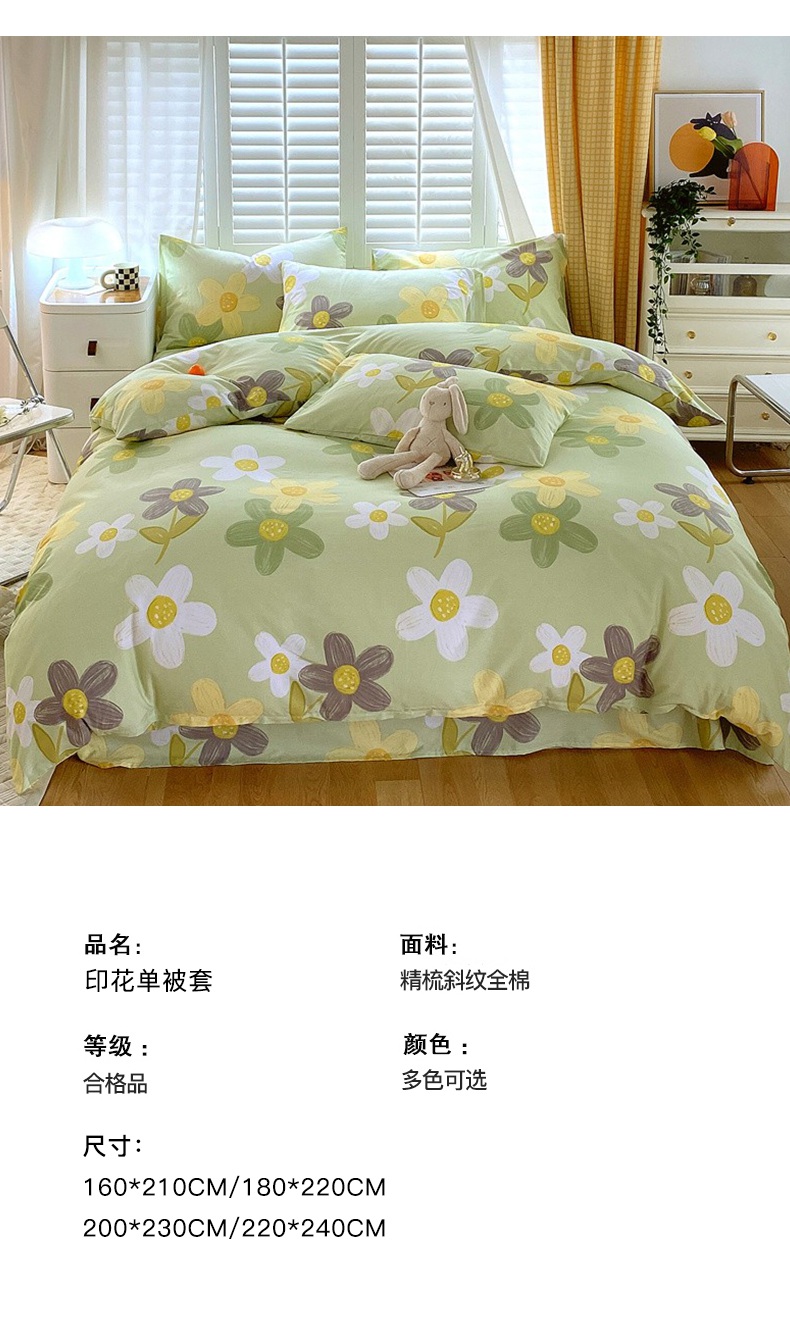 (总)金鑫汇家纺 2026新款全棉印花小清新单品被套系列-可露丽,海盐可露丽,浅咖可露丽,浅绿可露丽,月下花影-桔,月下花影-蓝,月下花影-绿