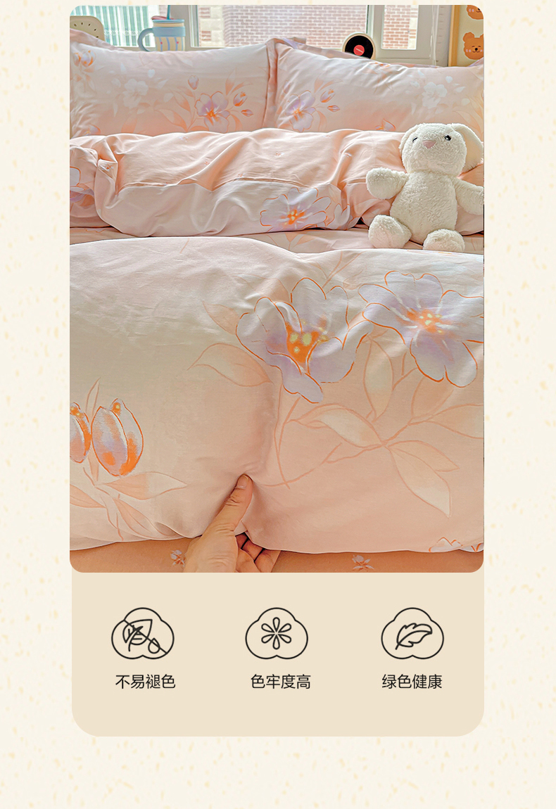 当前位置: 91家纺网 > 商品网购 > 床品套件 > 四件套 > 全棉普通四件套 > 恩泽2025全棉印花四件套 娇姿