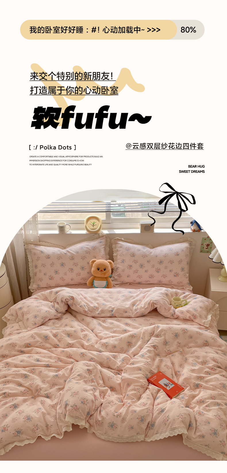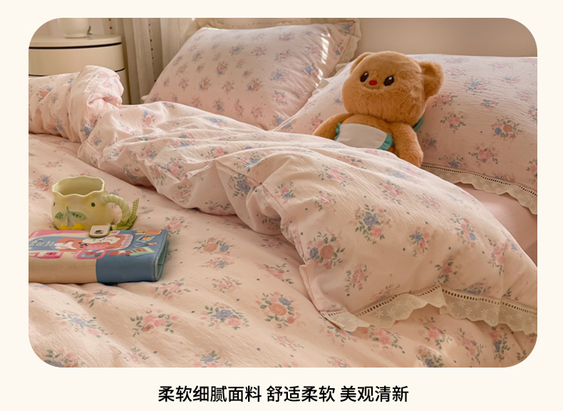 (总)玉海棠家纺 2025新款云感双层纱花边四件套,花边-布丁狗,花边-初恋,花边-米奇,花边-茉片,花边-莫奈,花边-诺言兔兔,花边-晴天,花边-桃桃女孩,花边-桃夭,花边-甜梦,花边-晚香玉,花边-雾漫春日,花边-鲜花小兔,花边-小熊蛋糕,花边-芝士奶酪,花边格格西高地