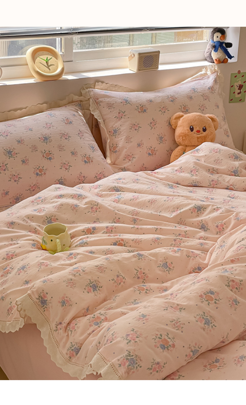 玉海棠家纺 2025新款云感双层纱花边四件套 花边-桃夭