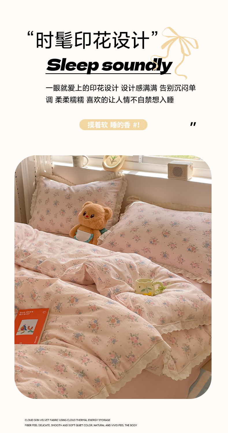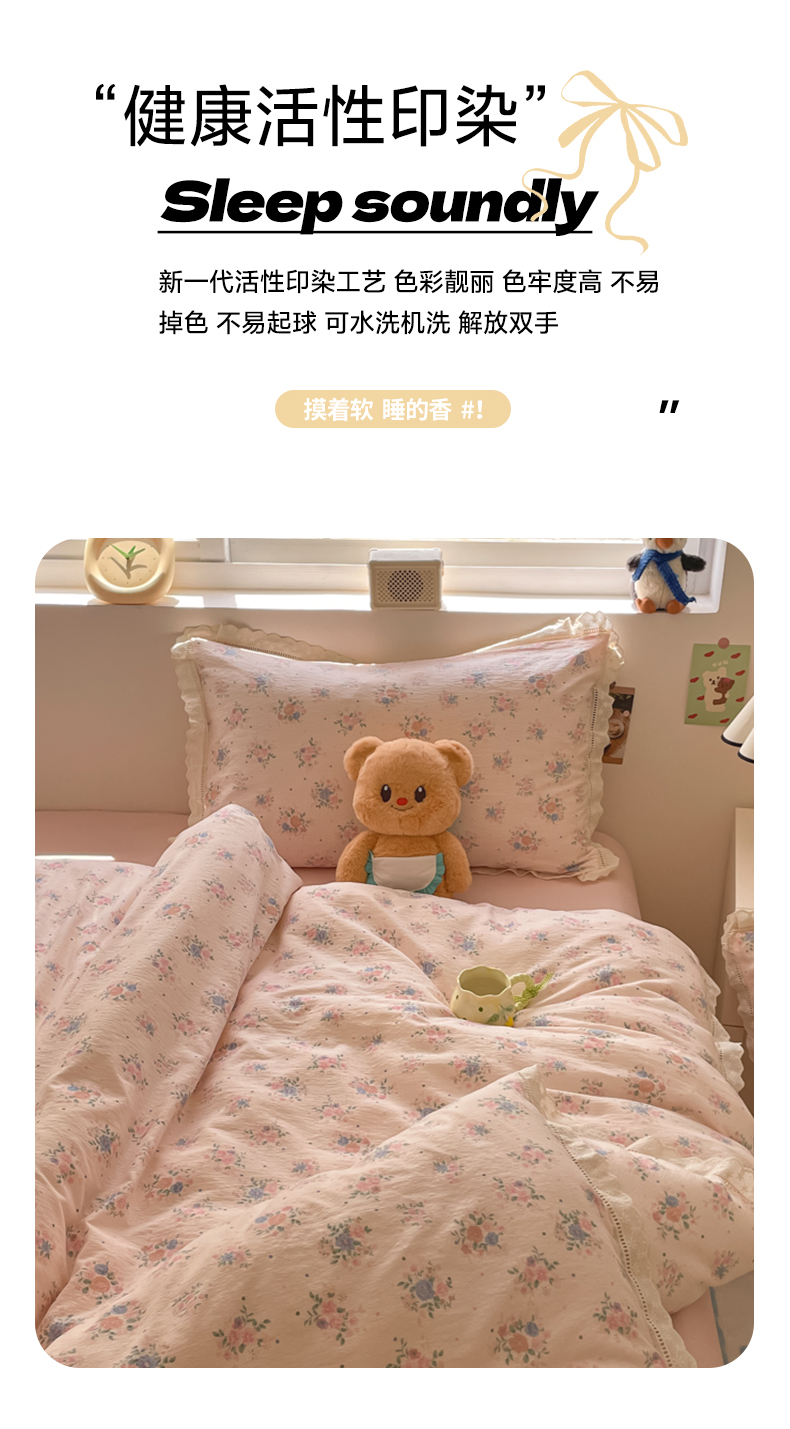 (总)玉海棠家纺 2026新款古法水洗仿棉云感纱四件套,豹纹,初恋,粉格KT猫,格调熊,海边童话,蝴蝶飞,狂欢part,彩色心动,蓝调兔语,绿野仙踪,满天星,浅蓝童话集,软萌七彩兔,甜品屋,甜心花园,小狗日记