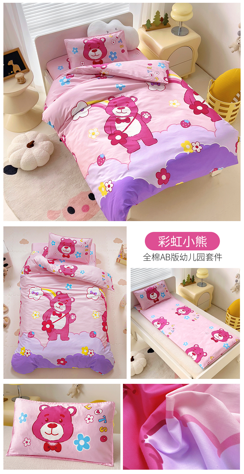 当前位置: 91家纺网 > 商品网购 > 床品套件 > 多件套 > 多件套 > 2025年新款幼儿园全棉被子三件套宝宝入园纯棉六件套被褥午睡被套彩虹小熊
