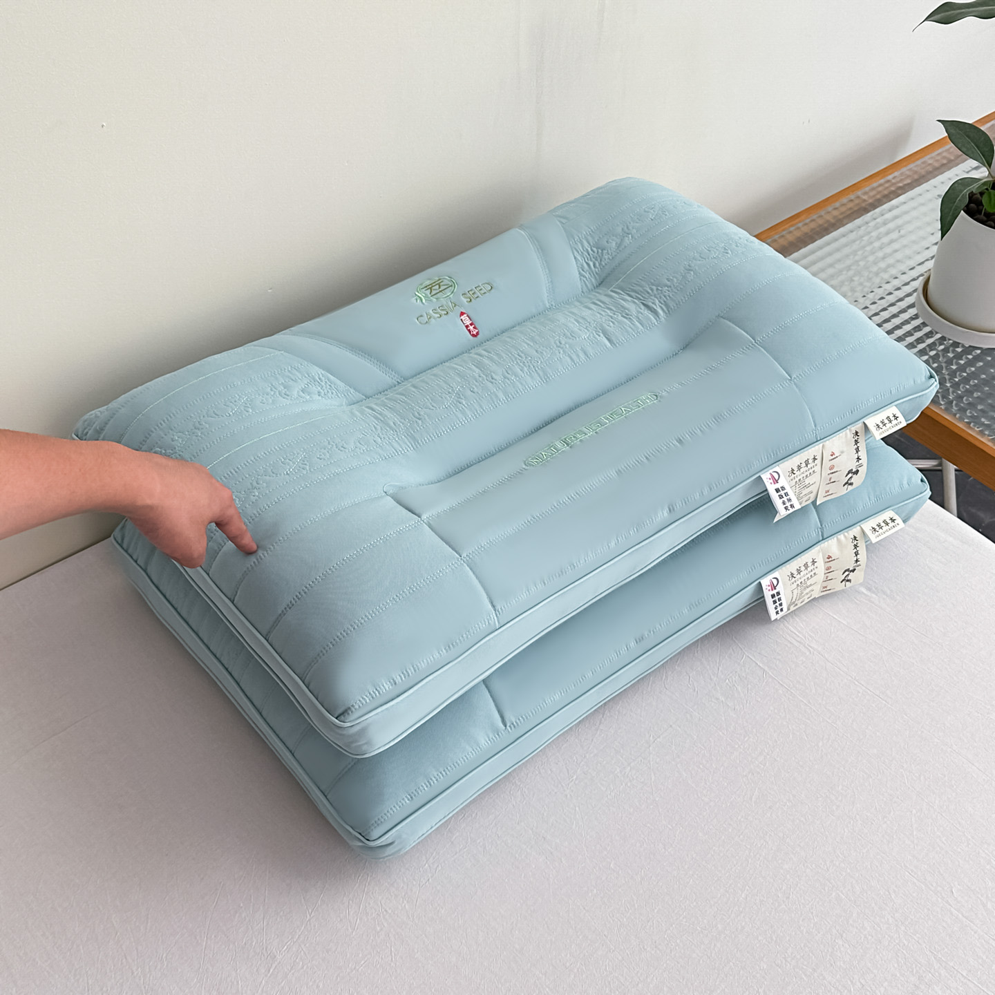 当前位置: 91家纺网 > 商品网购 > 枕头/枕芯/保健枕/颈椎枕 > 普通枕芯 > 橘夏家纺 2025新款颈椎疼痛专用护颈椎枕头牵引拉伸不塌陷助眠家用决明子枕芯 蓝