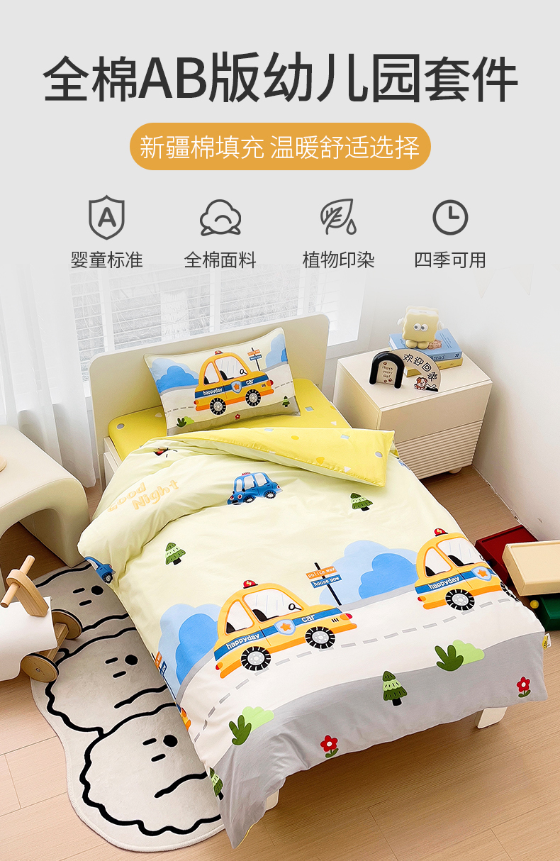 当前位置: 91家纺网 > 商品网购 > 床品套件 > 多件套 > 多件套 > 2025年新款幼儿园全棉被子三件套宝宝入园纯棉六件套被褥午睡被套小面包车