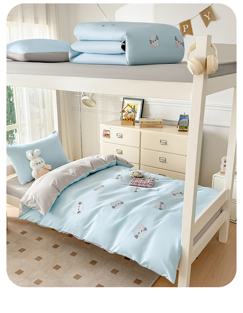 当前位置: 91家纺网 > 商品网购 > 床品套件 > 三件套 > 笙意家纺 2025亲肤水洗棉学生宿舍三件套上下铺三件套-满绣系列 可爱猫-天蓝+山灰