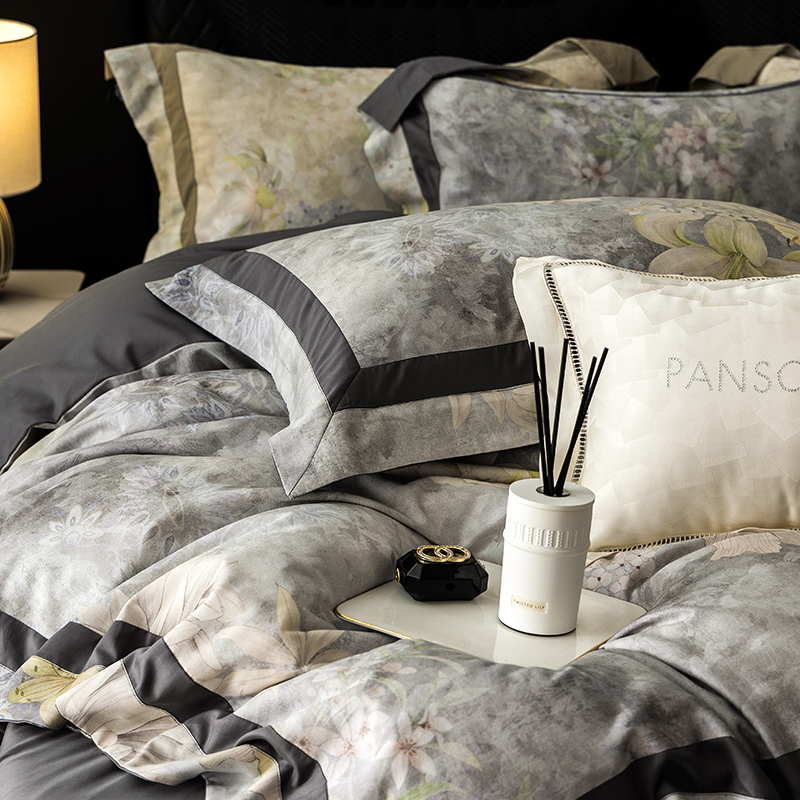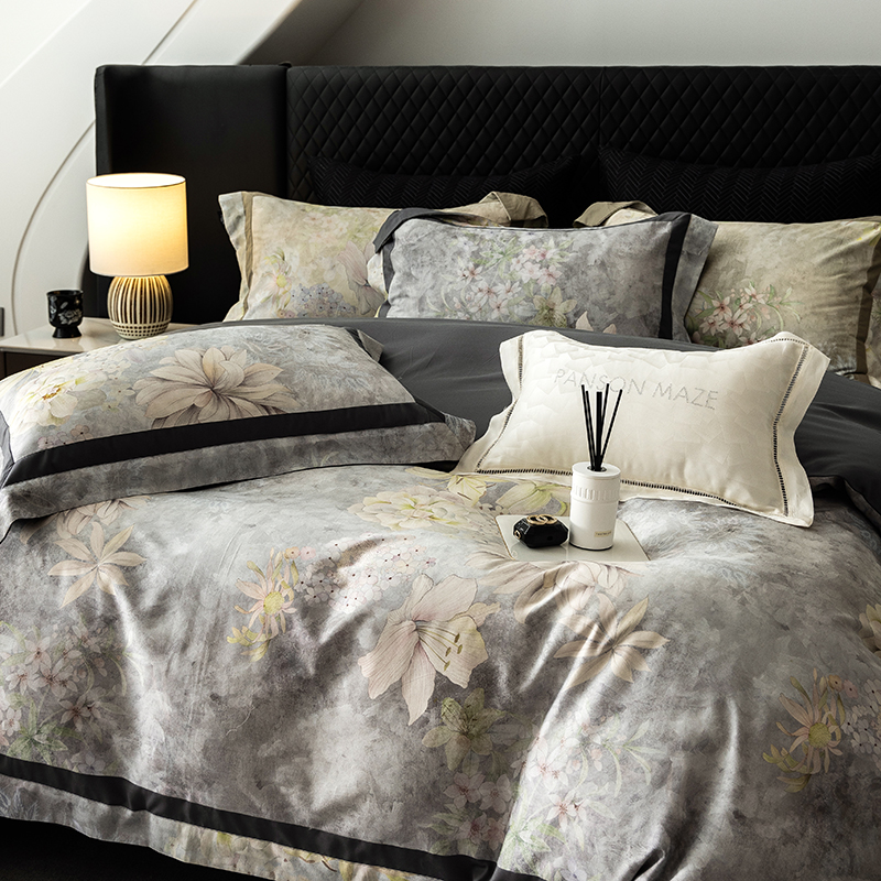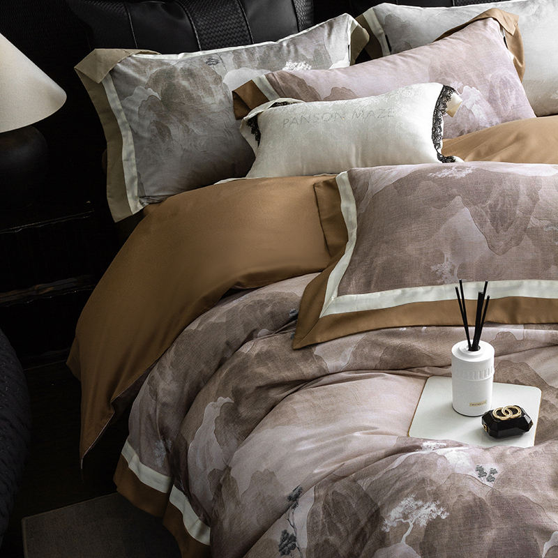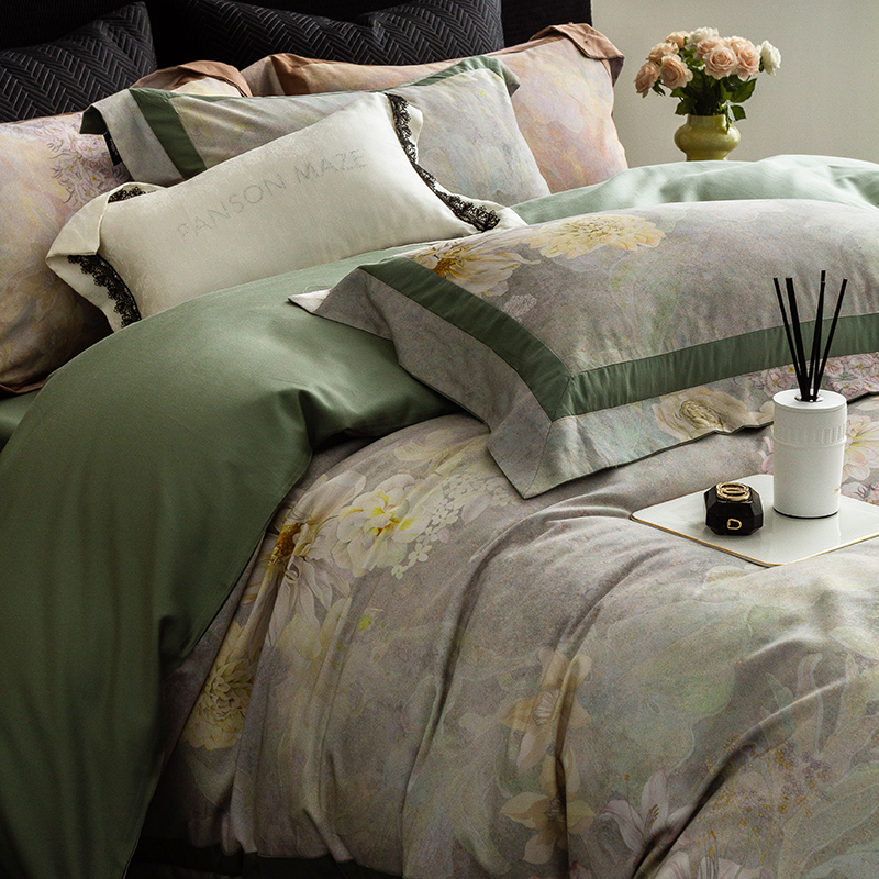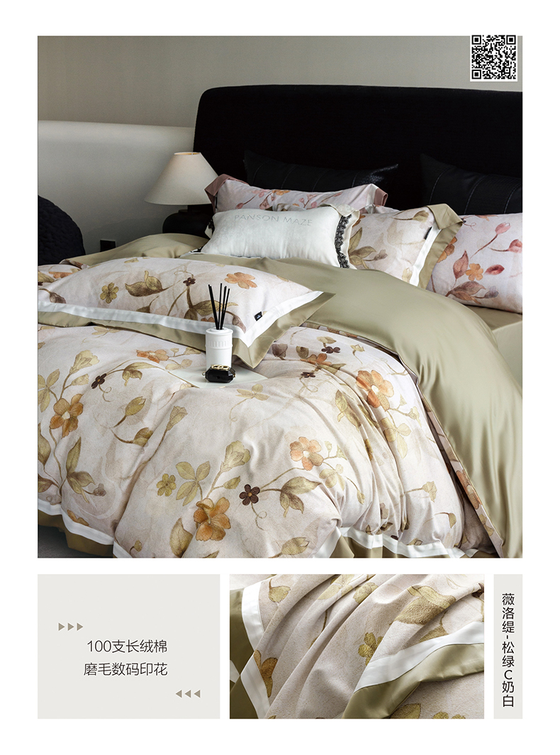 商品名称:威克凯丽 2024新款长绒棉数码印花100S磨毛双拼四件套 安喜娜-B橄榄咖