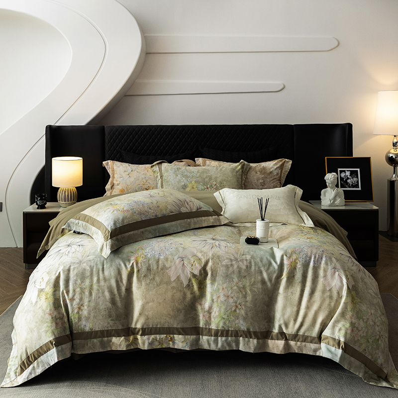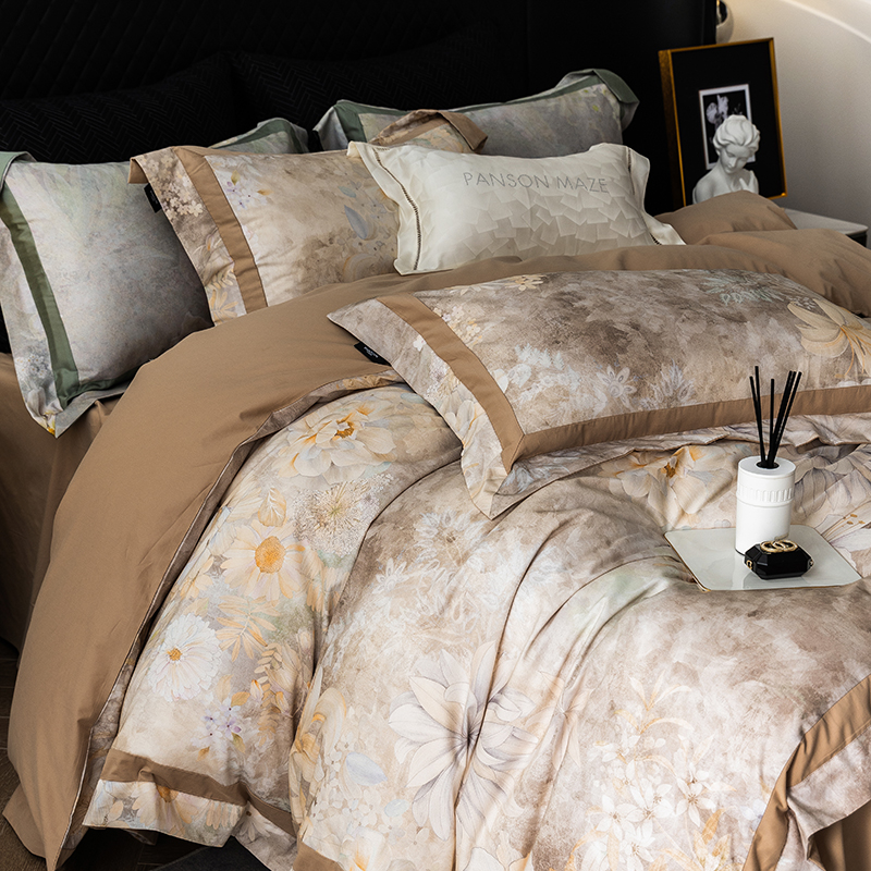 威克凯丽 2024新款长绒棉数码印花100S磨毛双拼四件套 安喜娜-B橄榄咖