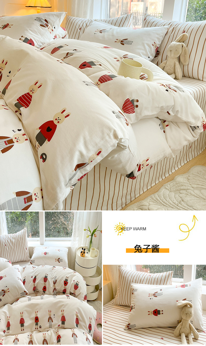 当前位置: 91家纺网 > 商品网购 > 床品套件 > 四件套 > 全棉普通四件套 > 麦伦家居 2025春夏新款全棉纯棉斜纹40s13372系列-小清新卡通 兔子酱