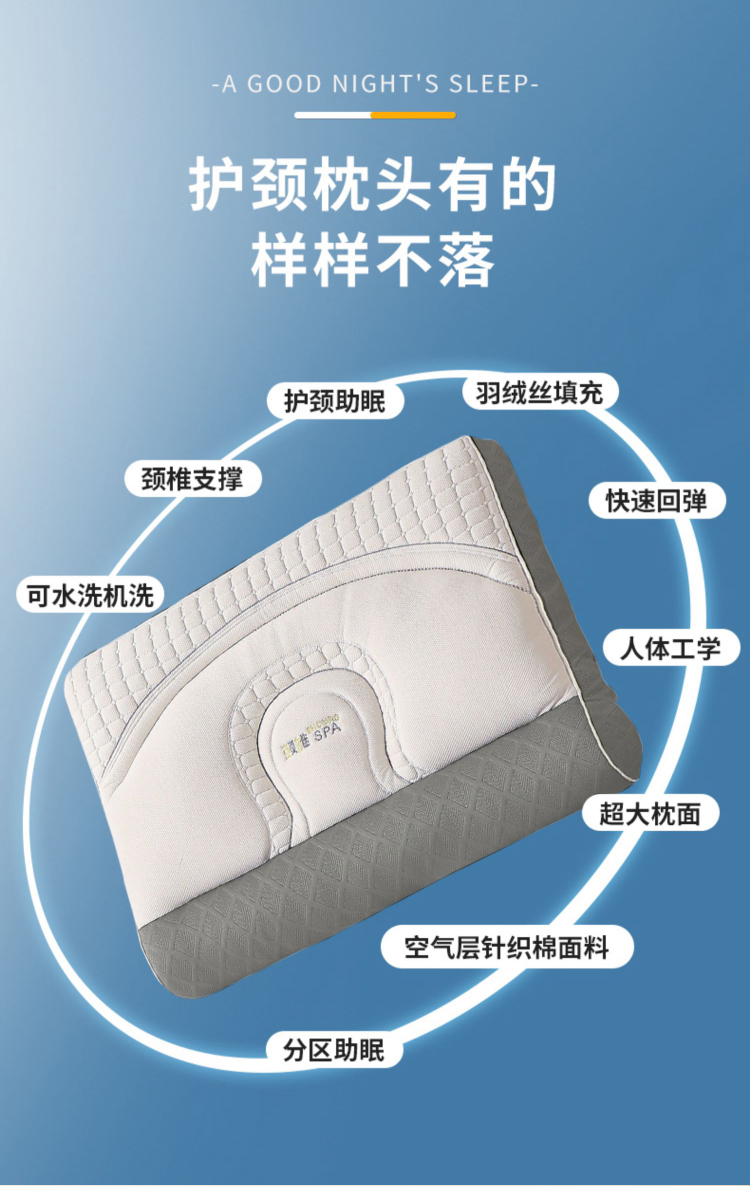 当前位置: 91家纺网 > 商品网购 > 枕头/枕芯/保健枕/颈椎枕 > 普通枕芯 > 蝶飞舞 2025新款针织亲肤颈椎spa枕头枕芯牵引枕头枕芯 灰色低枕 48*74cm