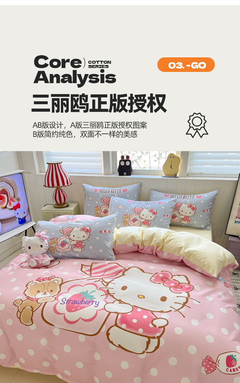 当前位置: 91家纺网 > 商品网购 > 床品套件 > 四件套 > 全棉普通四件套 > 金爱家 2025新款三丽鸥纯棉数码印花系列四件套 大阪-糖果kt
