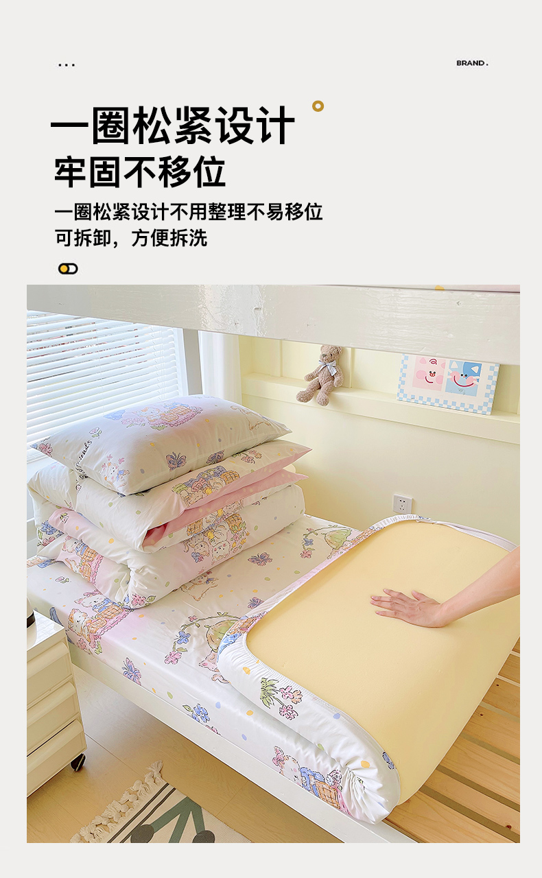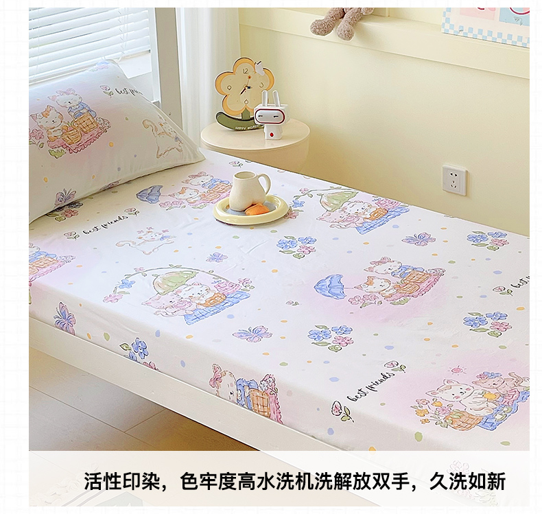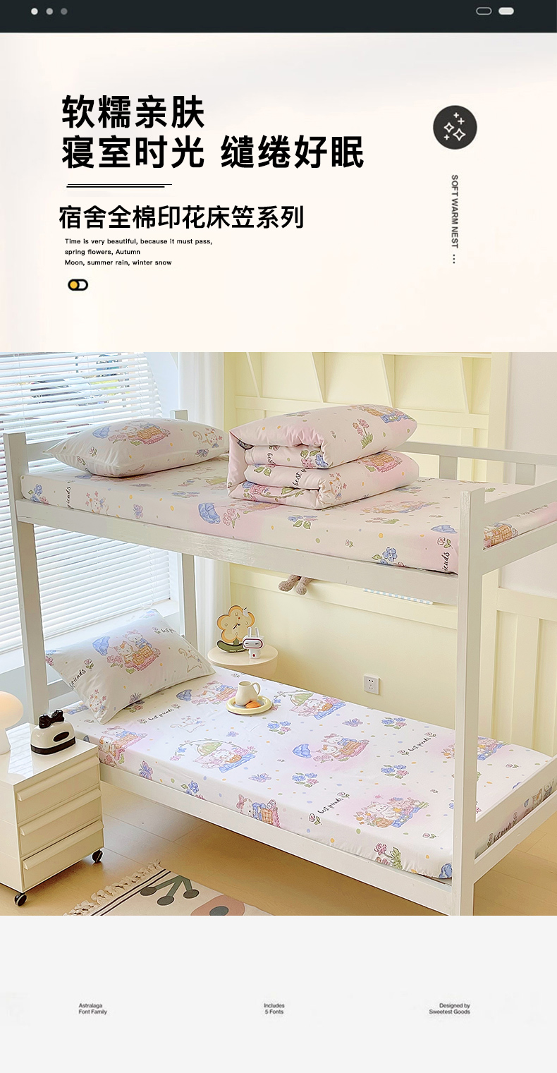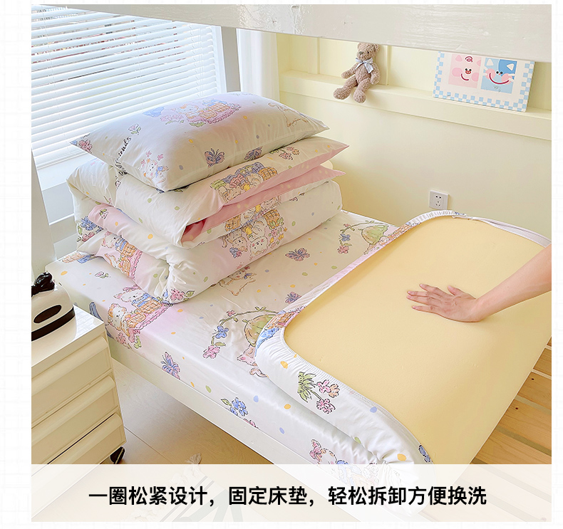金鑫汇家纺 2025新款全棉学生宿舍单品床笠系列 花丛兔