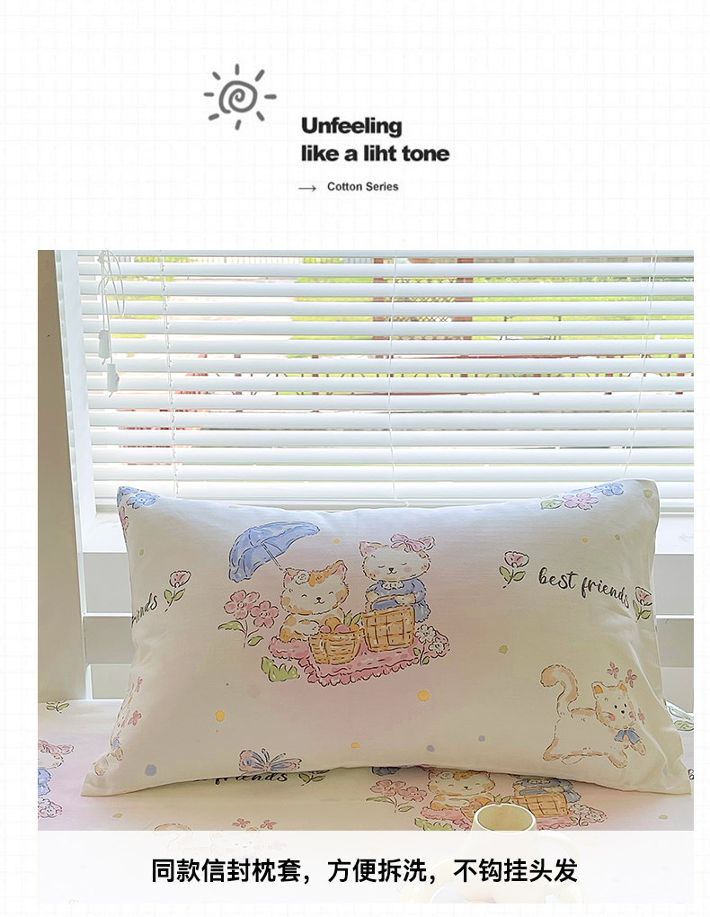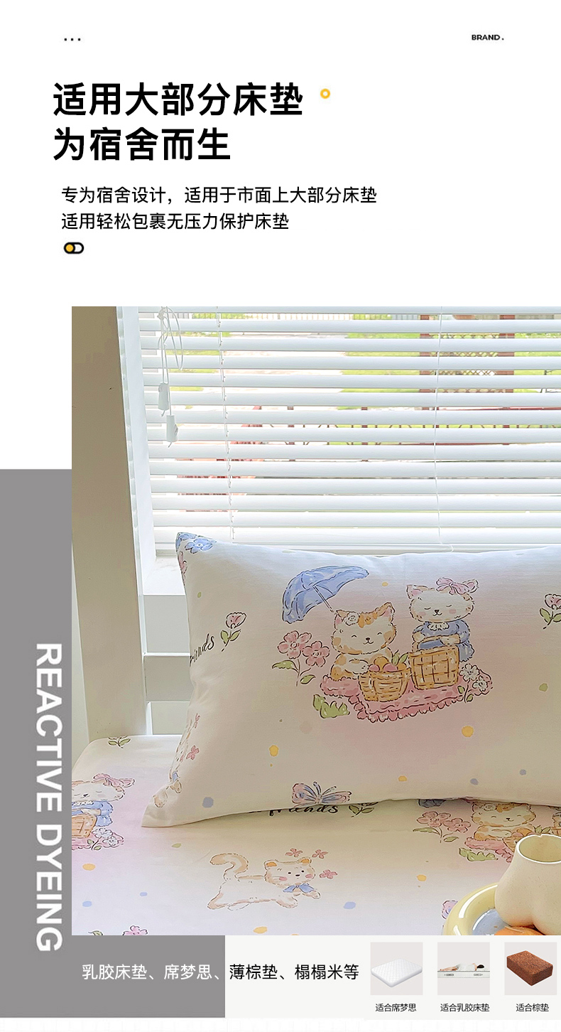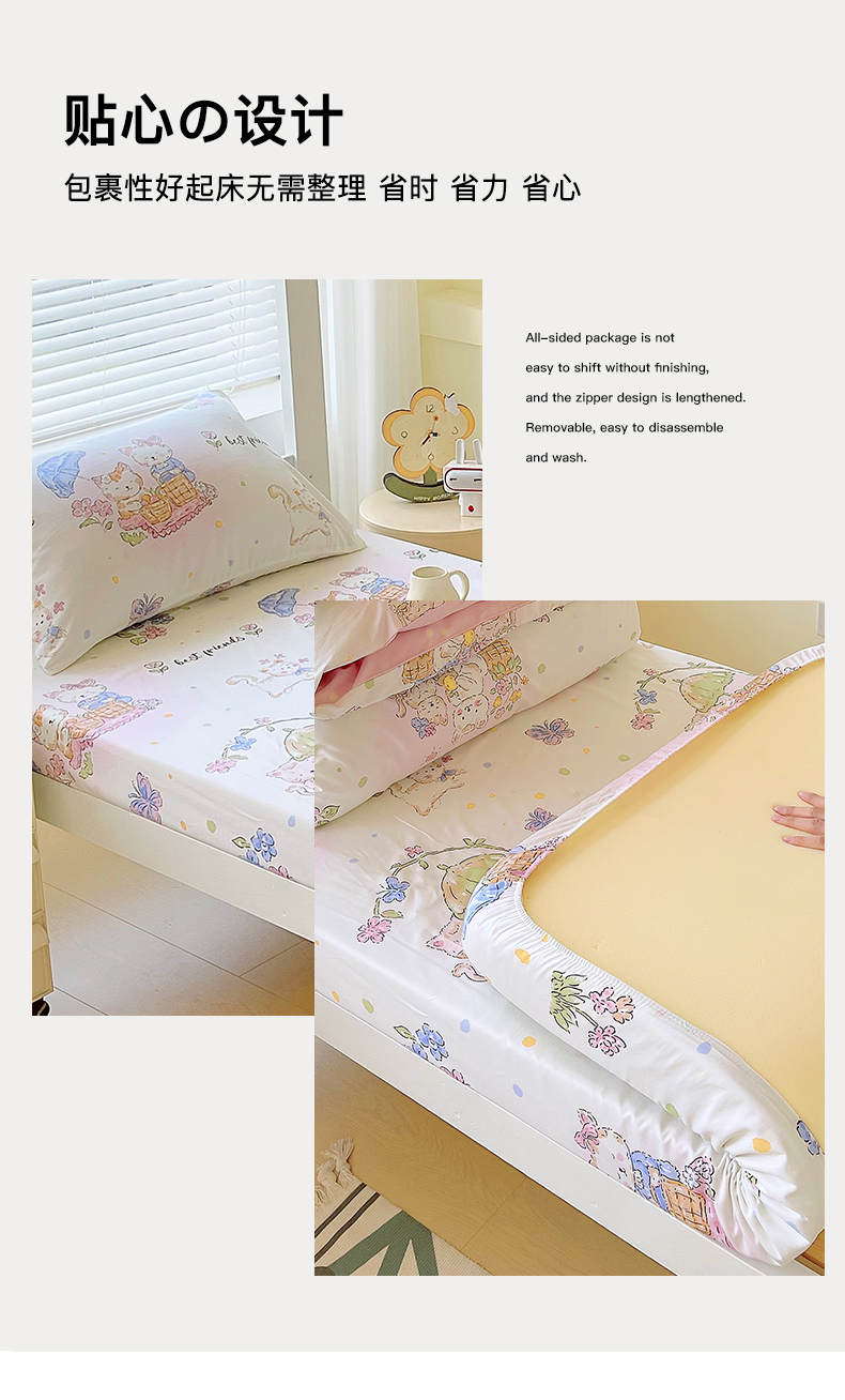 金鑫汇家纺 2025新款全棉学生宿舍单品床笠系列 花丛兔
