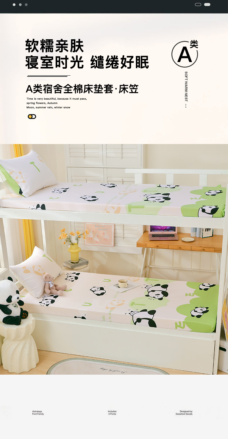 商品名称:金鑫汇家纺 2025新款全棉学生宿舍单品床单系列 可爱熊猫