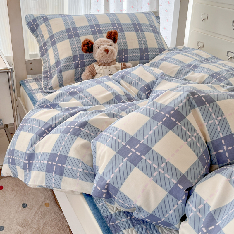 商品名称:暖居2025新款学生季三件套棉加绒床盖双面被套学生宿舍专用 简约格子