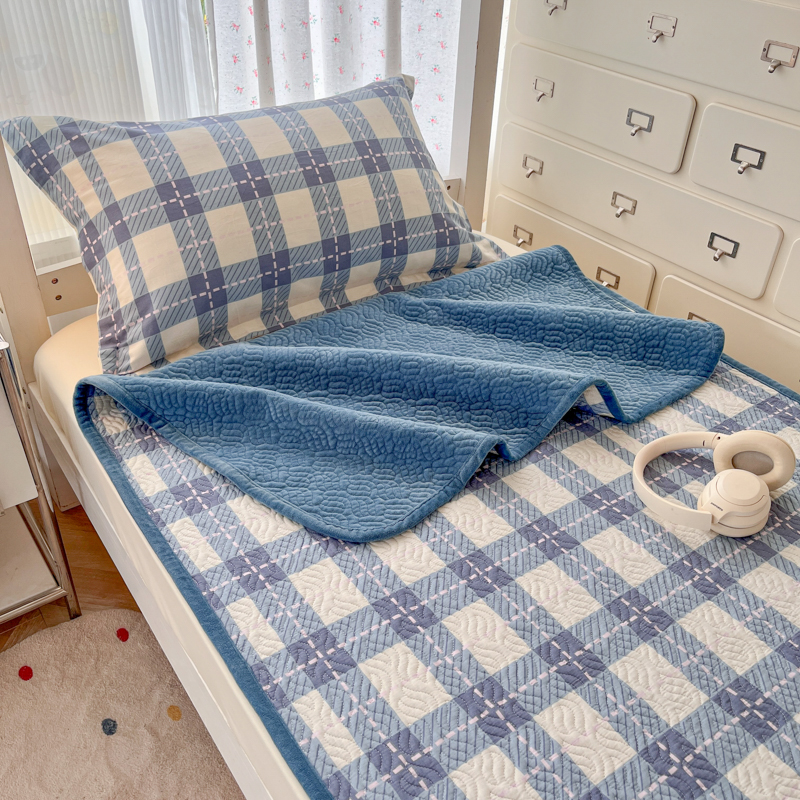 暖居2025新款学生季三件套棉加绒床盖双面被套学生宿舍专用 简约格子