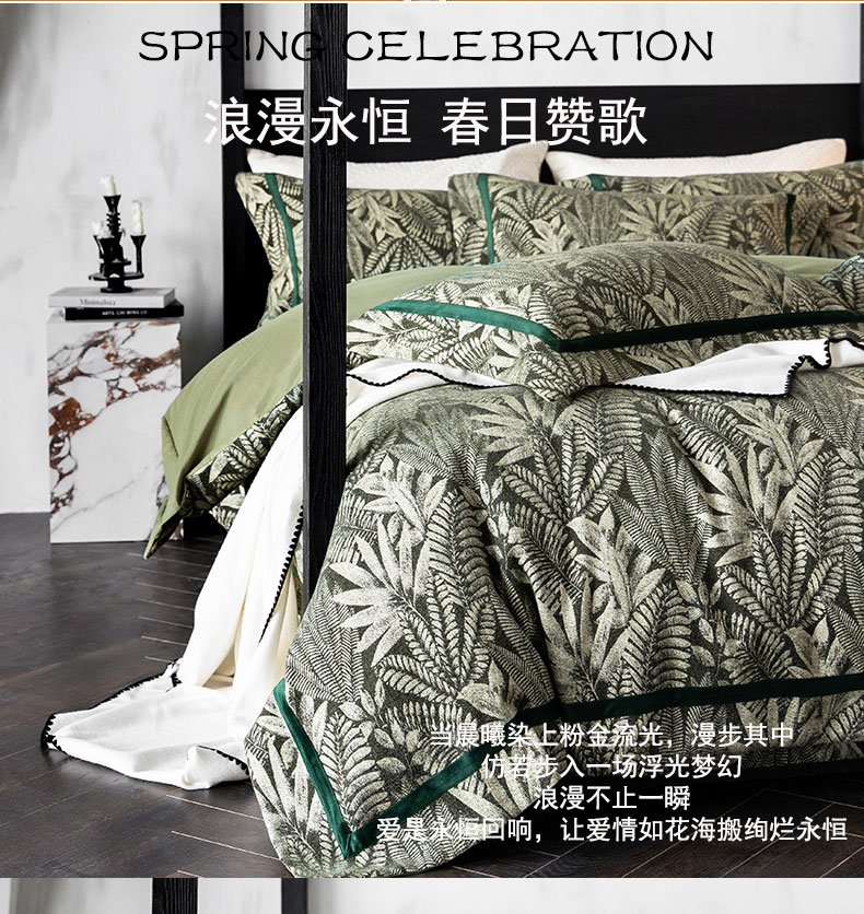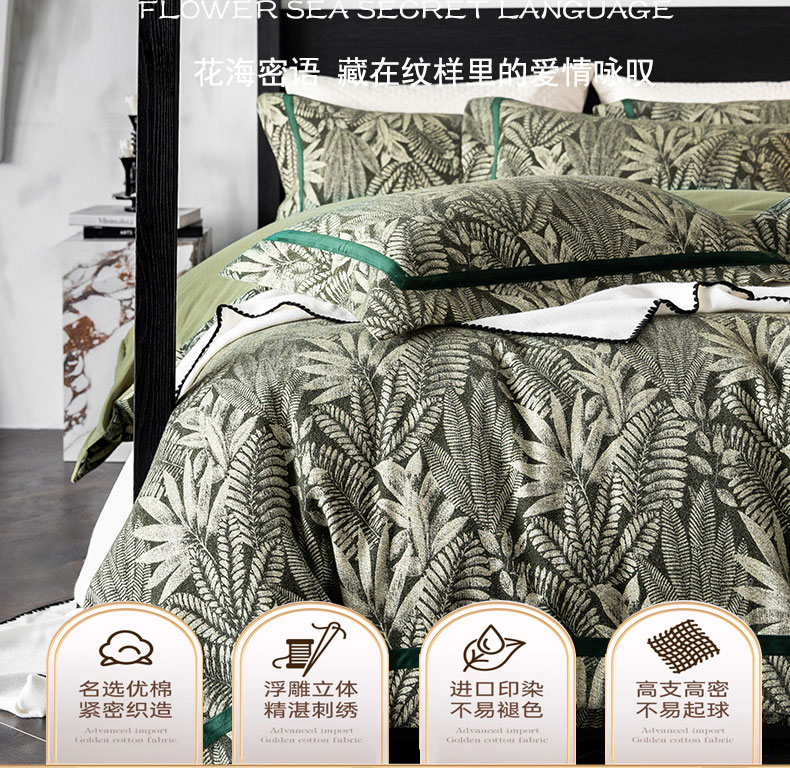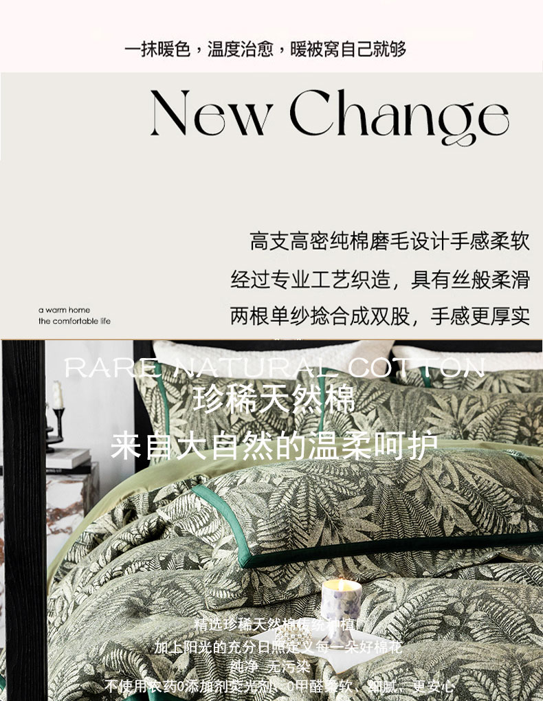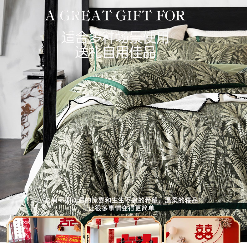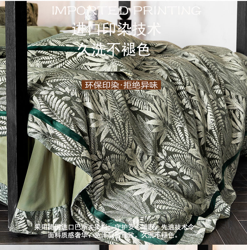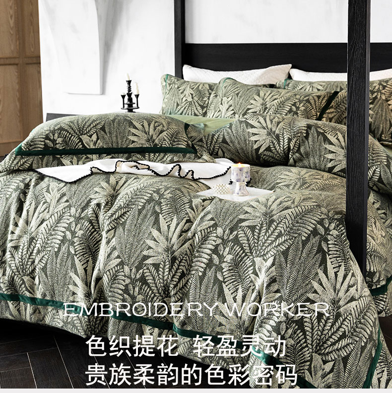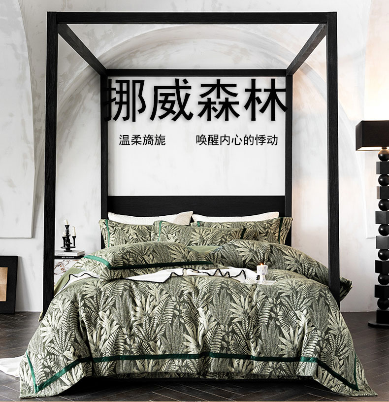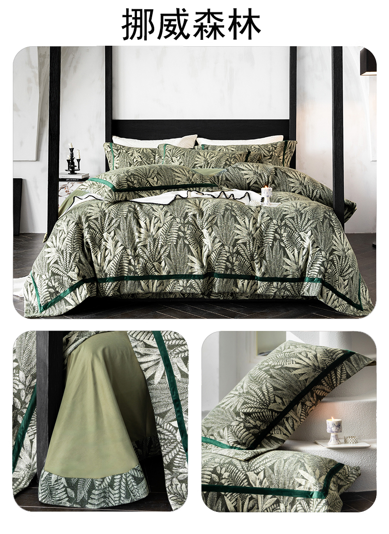 商品名称:蒂爵 2025新款A版羊毛混纺、b版新疆长绒棉时尚秋冬四件套-挪威森林 挪威森林-绿