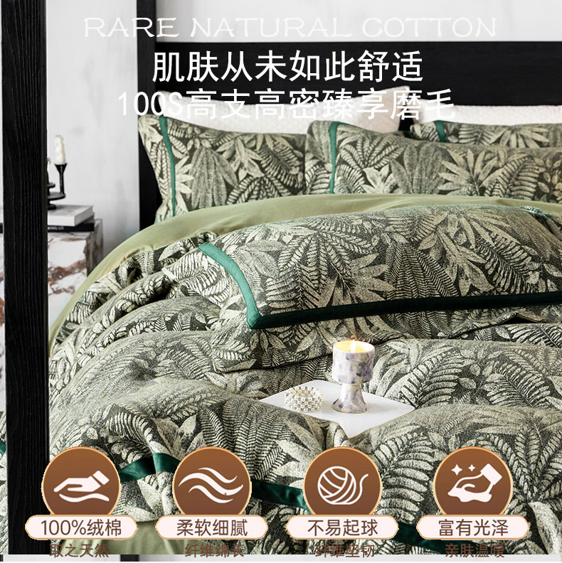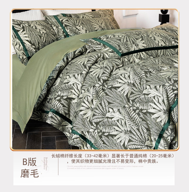 蒂爵 2025新款A版羊毛混纺、b版新疆长绒棉时尚秋冬四件套-挪威森林 挪威森林-绿