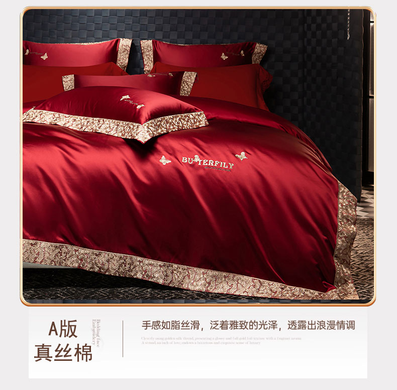(总)蒂爵 全棉纯棉长绒棉大绣花婚庆四件套,百喜纳福,百子添福,多子多福,锦绣良缘,龙凤添喜,盛世花开