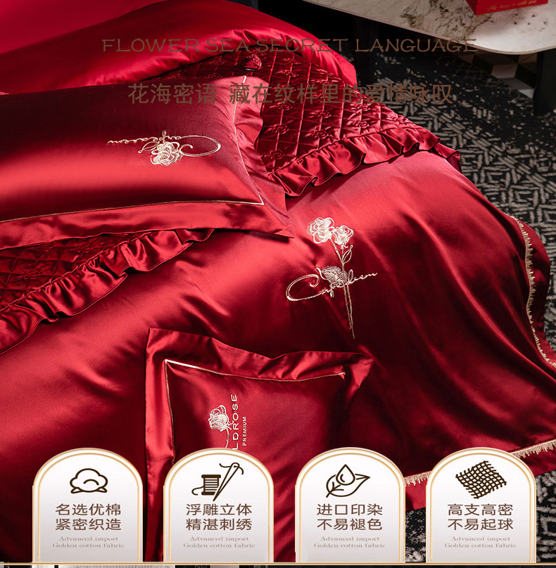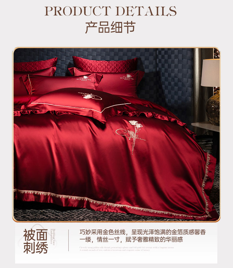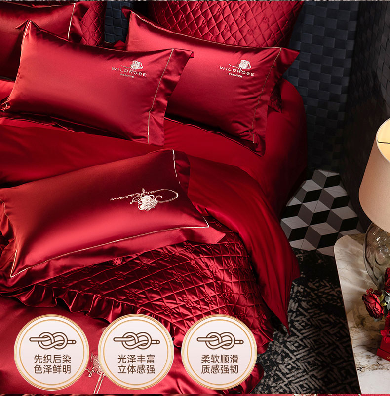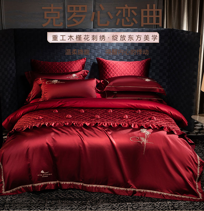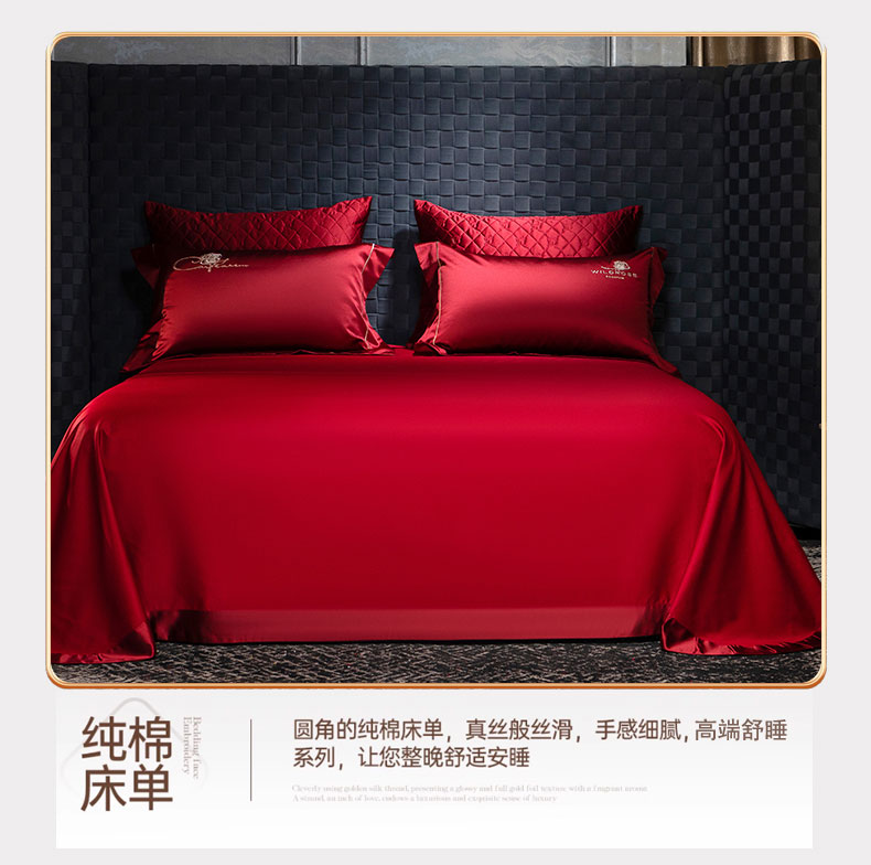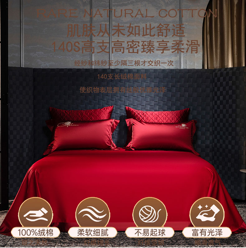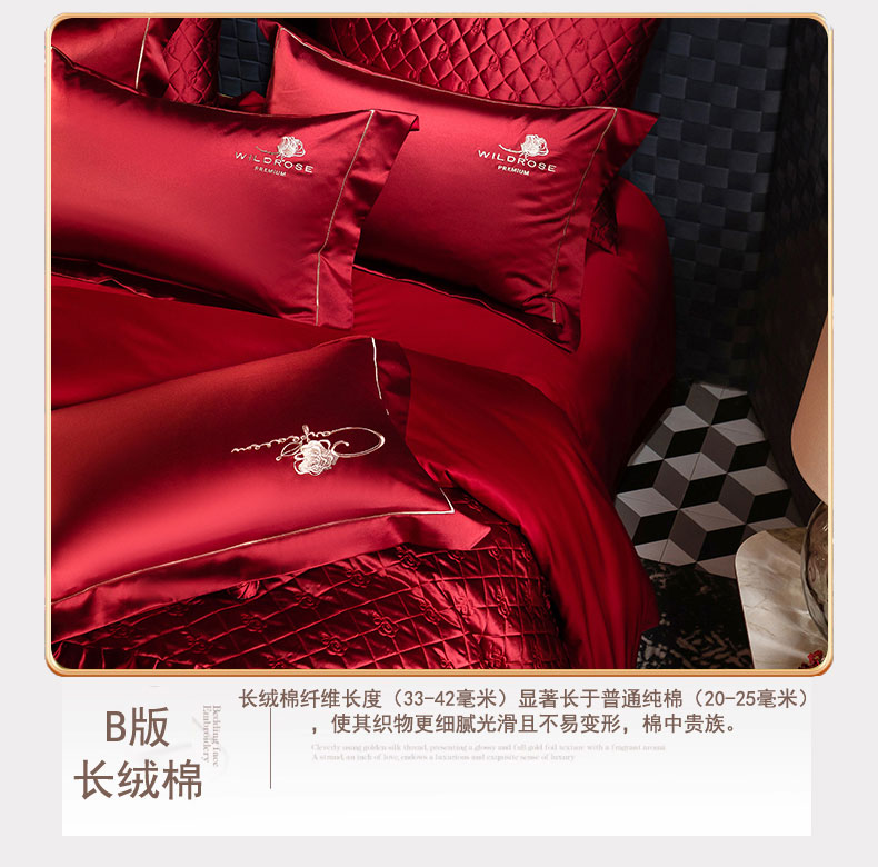 当前位置: 91家纺网 > 商品网购 > 床品套件 > 四件套 > 长绒棉四件套 > 蒂爵 2025新款A版真丝棉b版新疆长绒棉时尚高端四件套-克罗心恋曲 克罗心恋曲-红