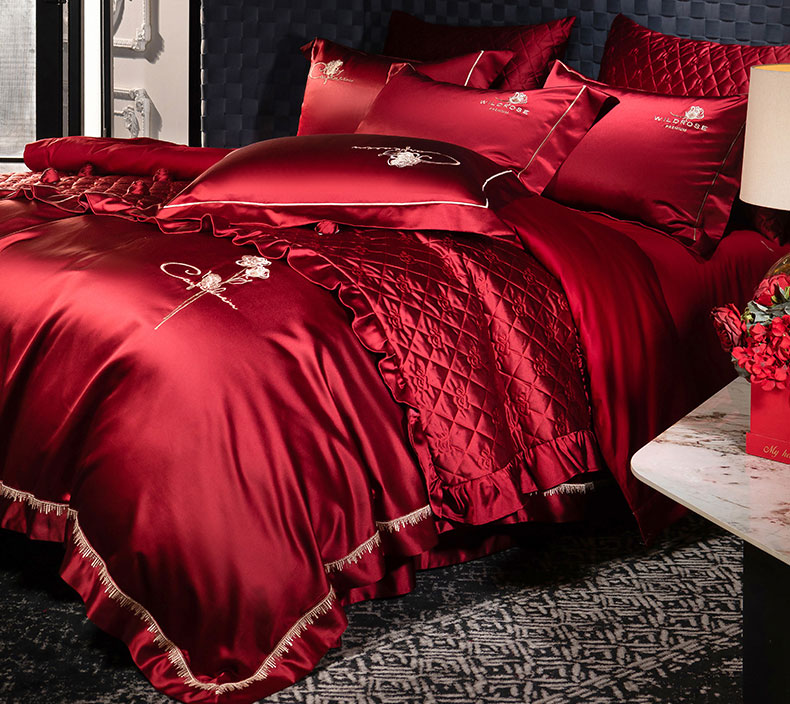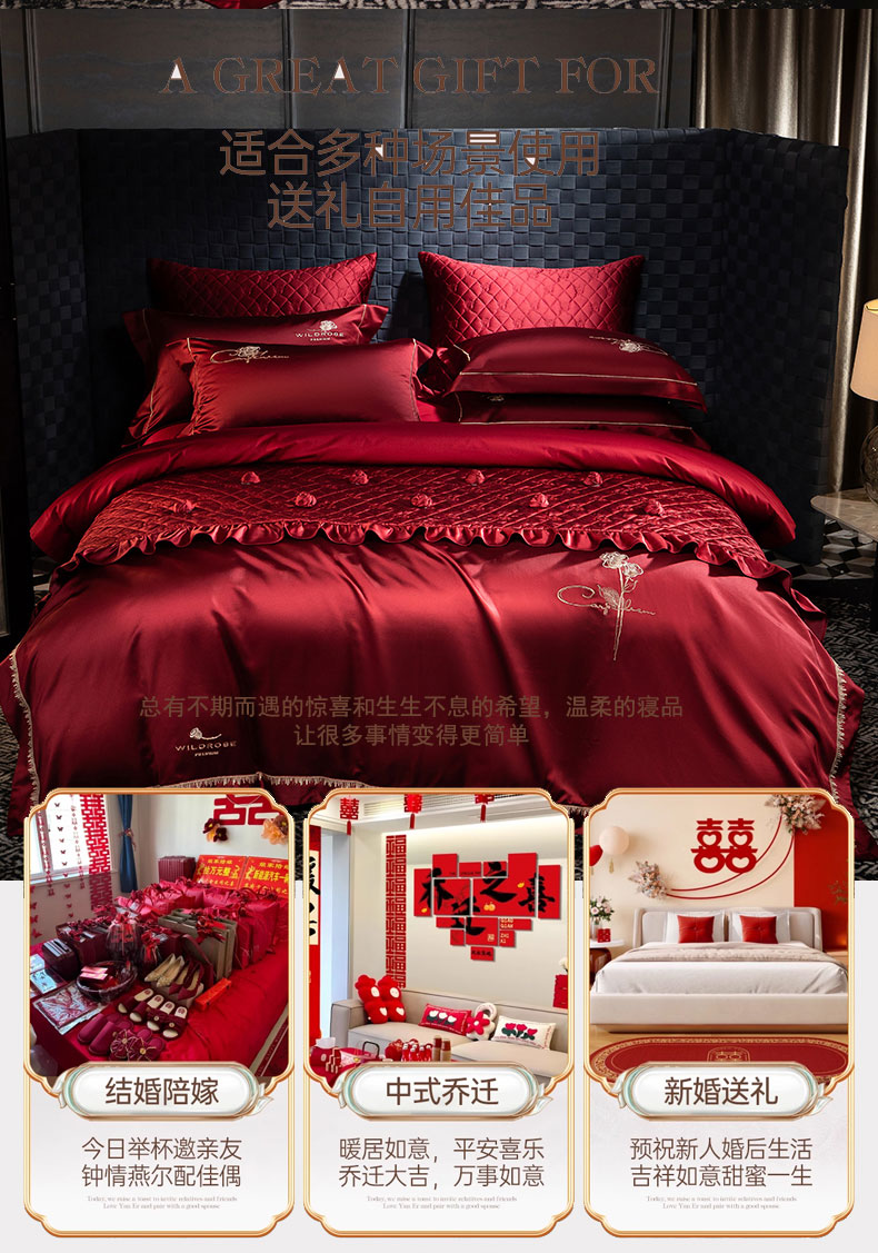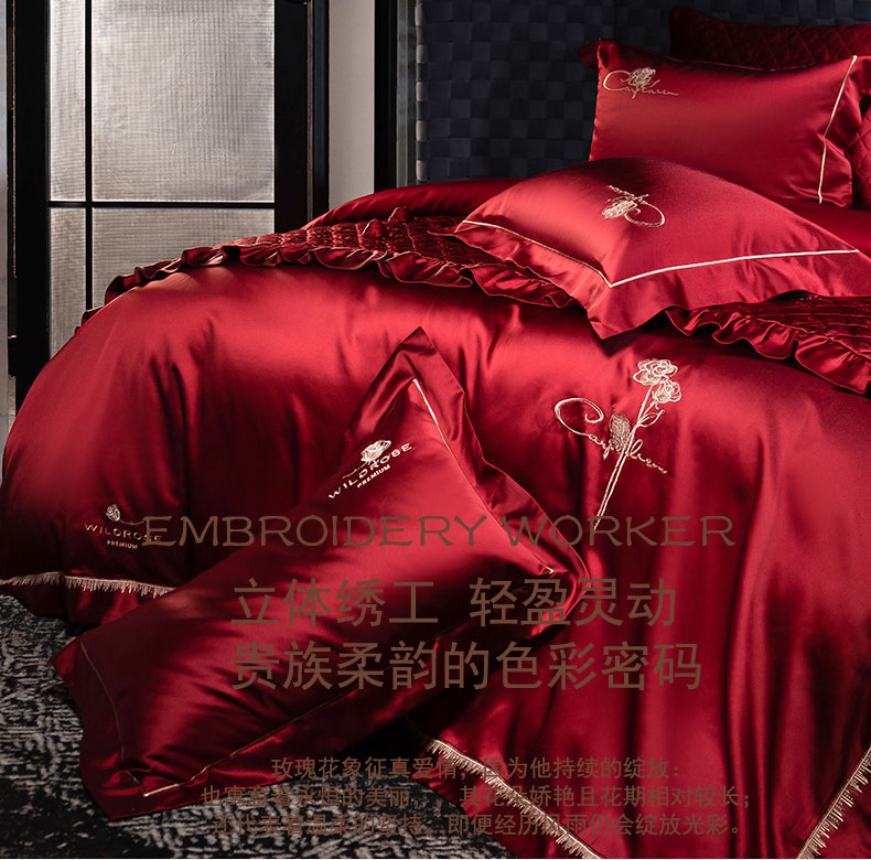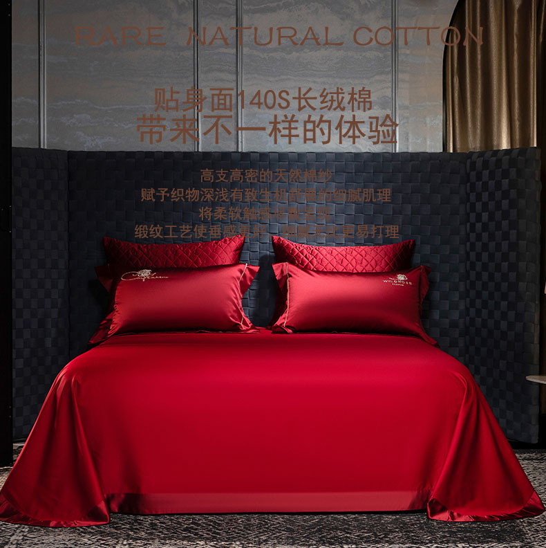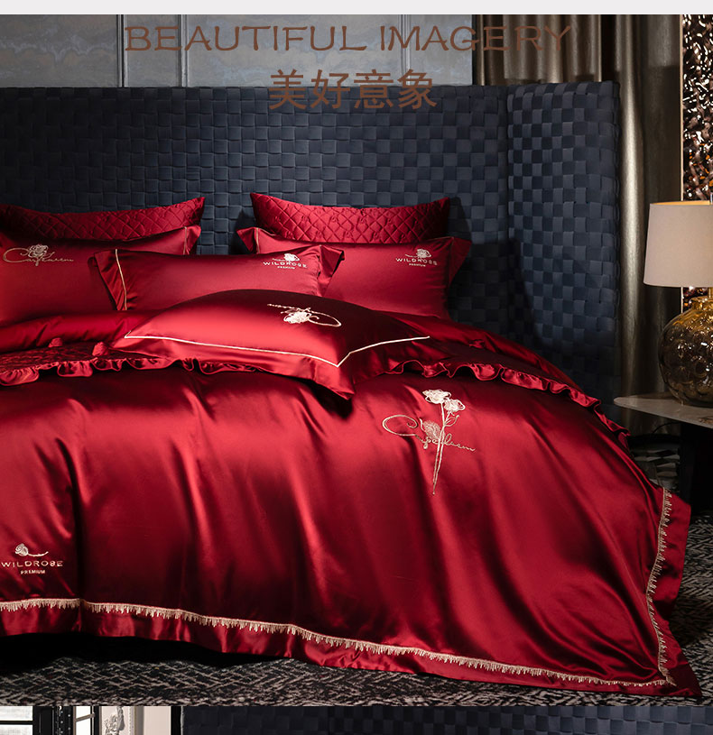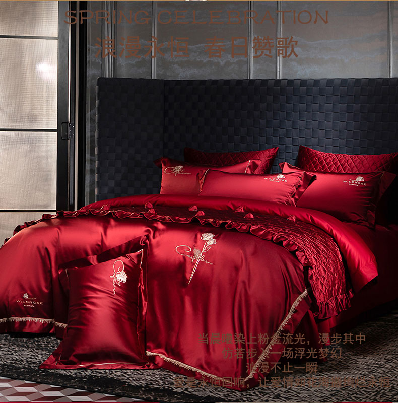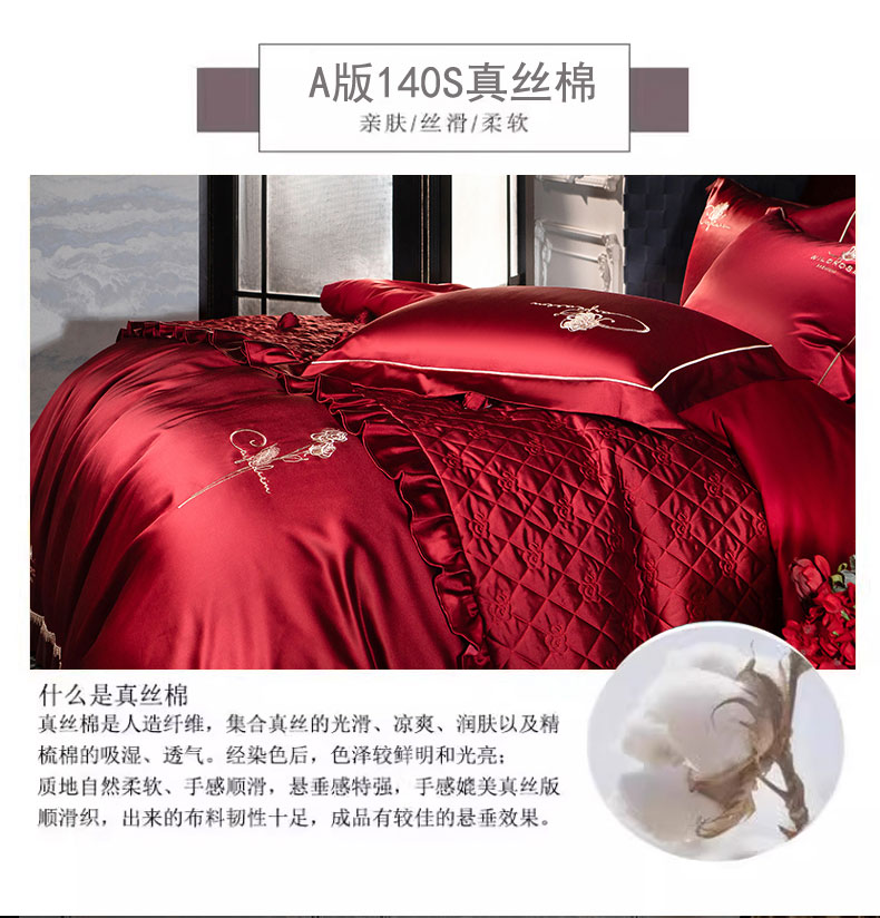当前位置: 91家纺网 > 商品网购 > 床品套件 > 四件套 > 长绒棉四件套 > 蒂爵 2025新款A版真丝棉b版新疆长绒棉时尚高端四件套-克罗心恋曲 克罗心恋曲-红