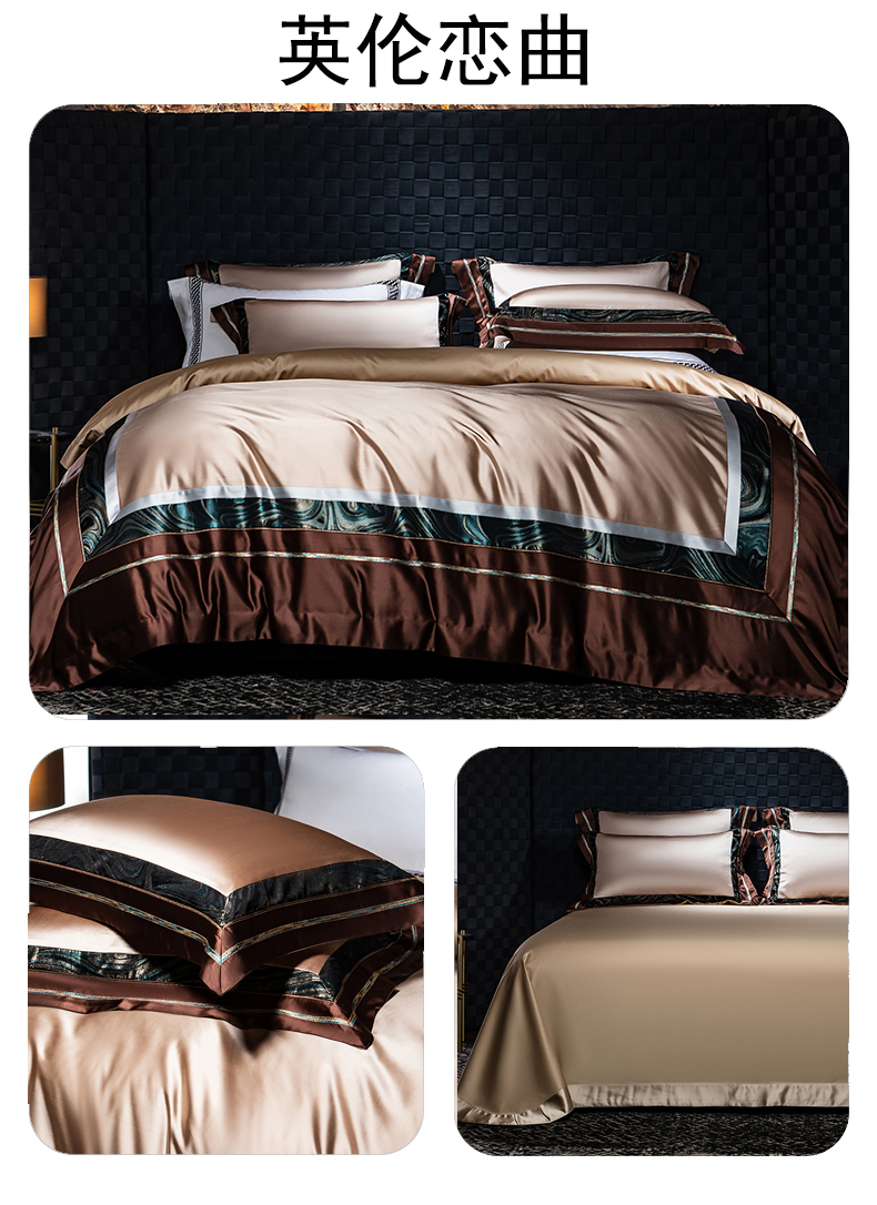 商品名称:(总)蒂爵 2025新款A版真丝棉b版新疆长绒棉时尚高端四件套-英伦雅致