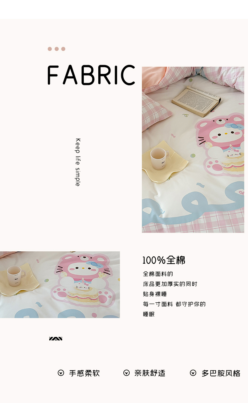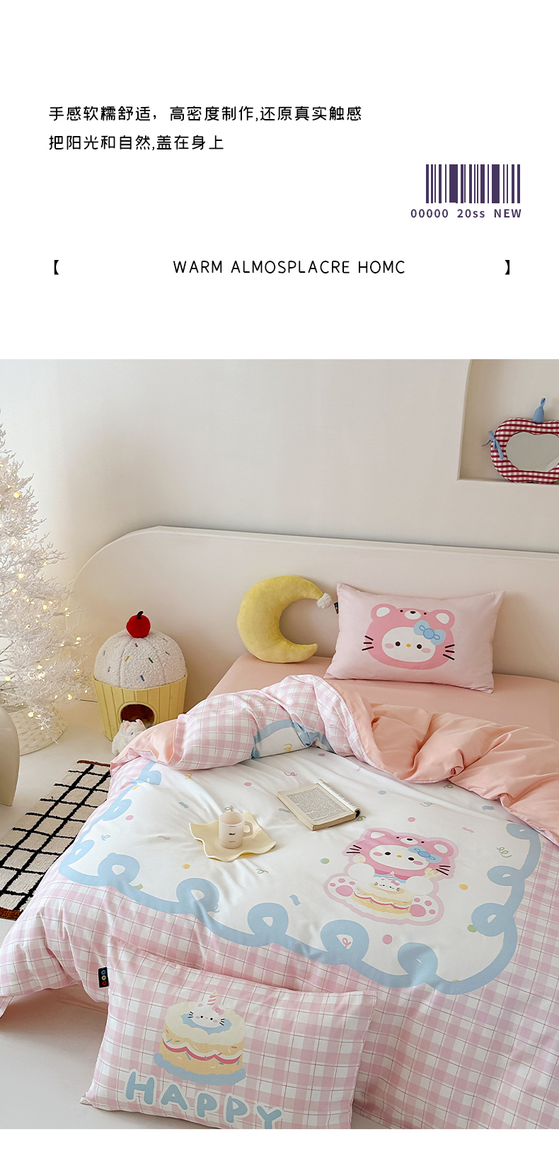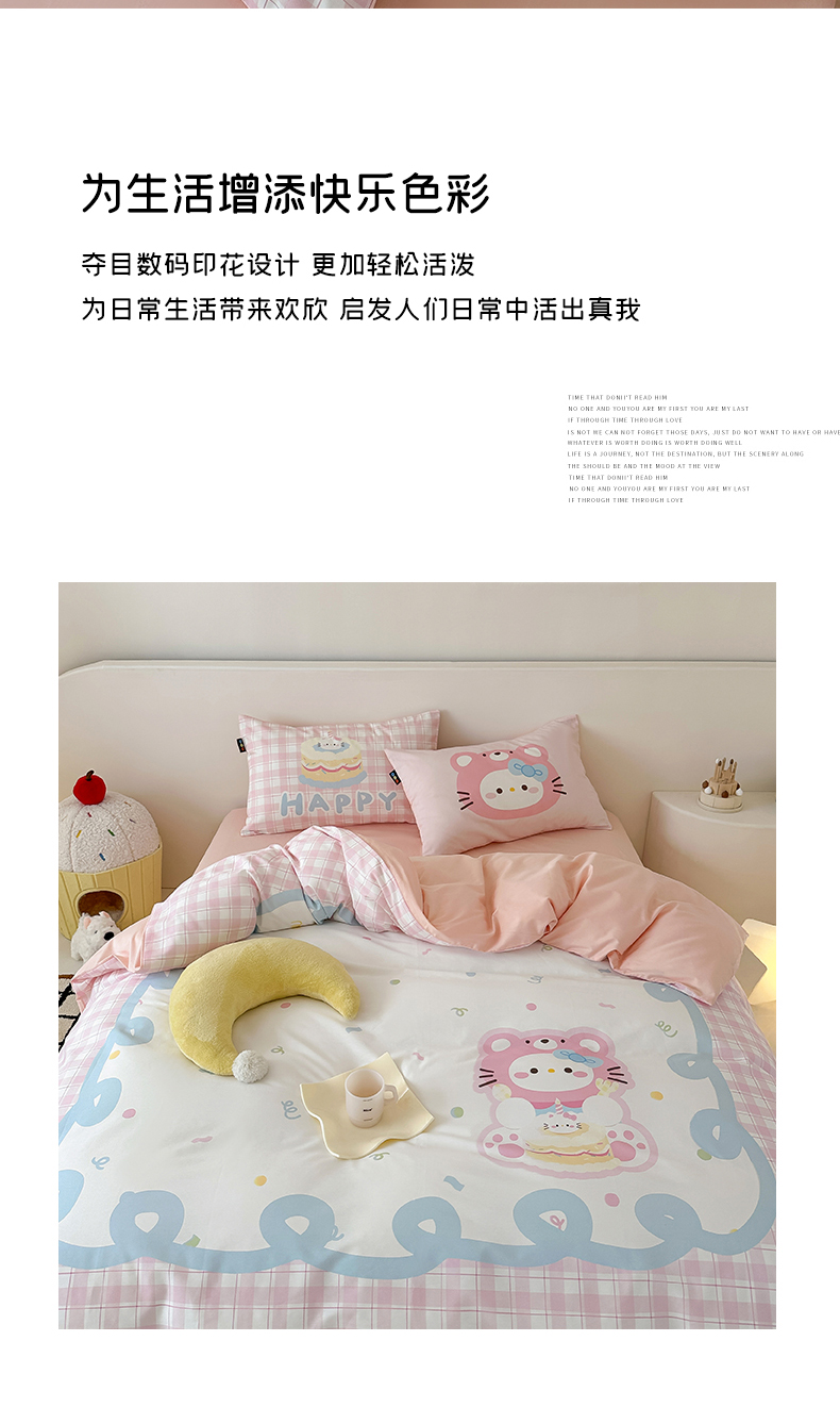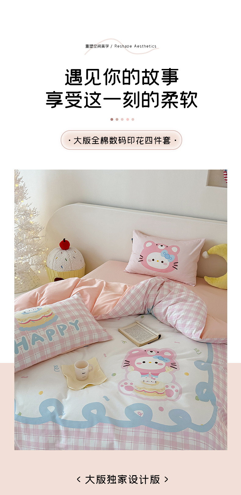 当前位置: 91家纺网 > 商品网购 > 床品套件 > 四件套 > 全棉普通四件套 > RYB红黄兰 开学季2025新款ins设计师原创大版卡通数码印花40s全棉纯棉四件套-场景二 蛋糕小奶猫