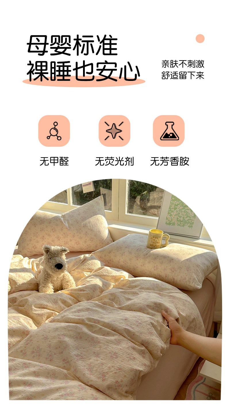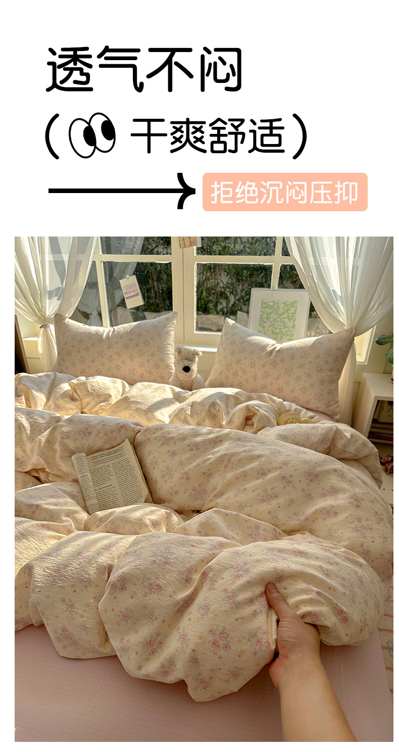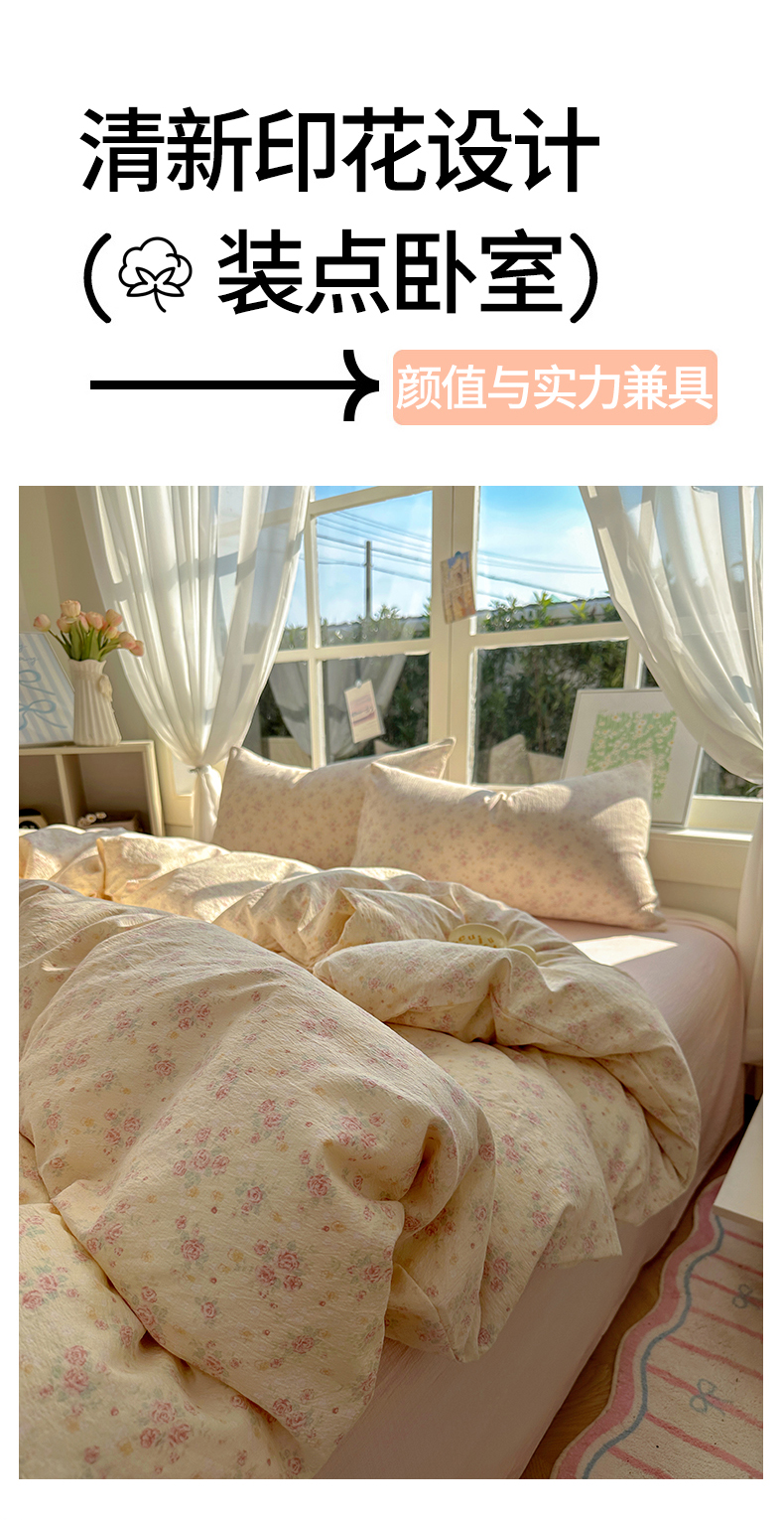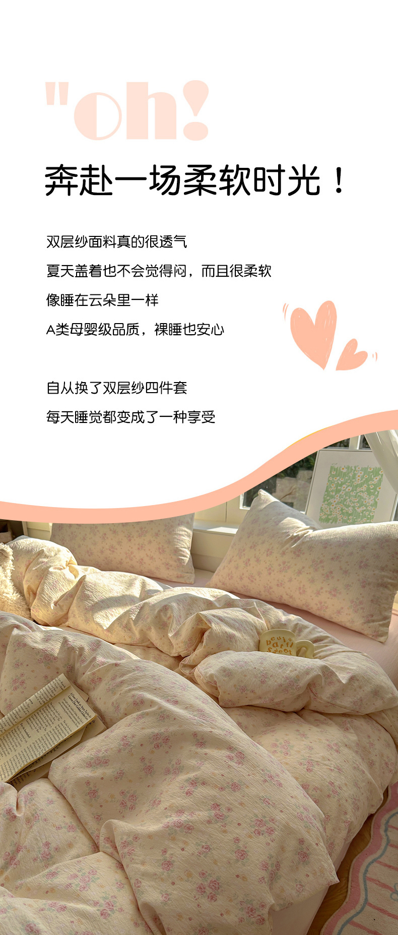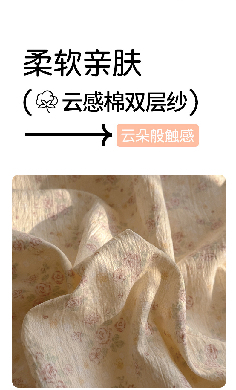 当前位置: 91家纺网 > 商品网购 > 床品套件 > 四件套 > 双层纱四件套 > 耀达家居 2025新款木棉A类有氧双层纱四件套小清新碎花床单宿舍三件套 露丝