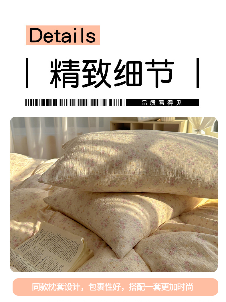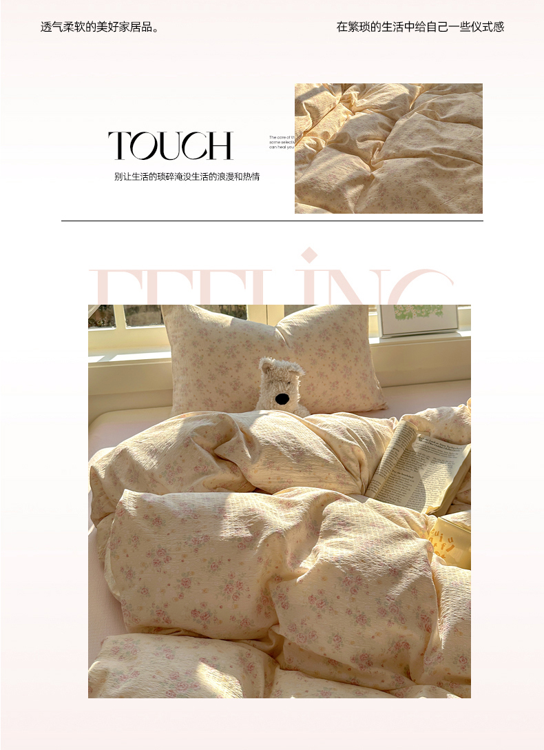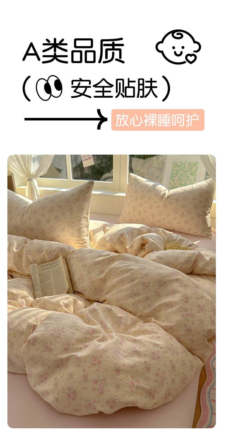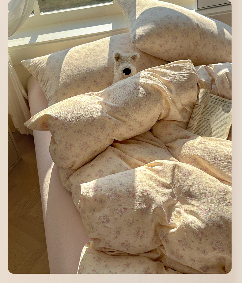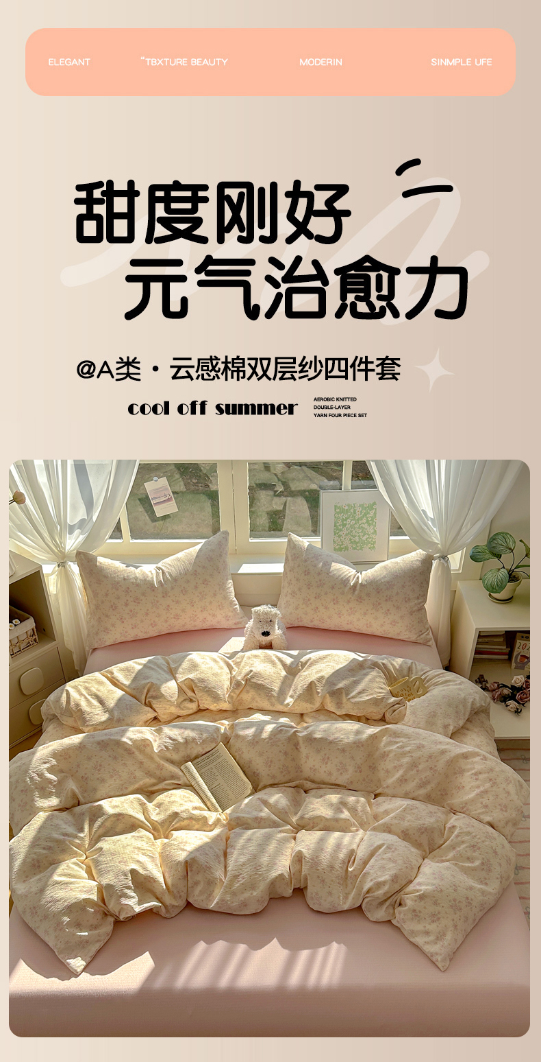 当前位置: 91家纺网 > 商品网购 > 床品套件 > 四件套 > 双层纱四件套 > 耀达家居 2025新款木棉A类有氧双层纱四件套小清新碎花床单宿舍三件套 露丝