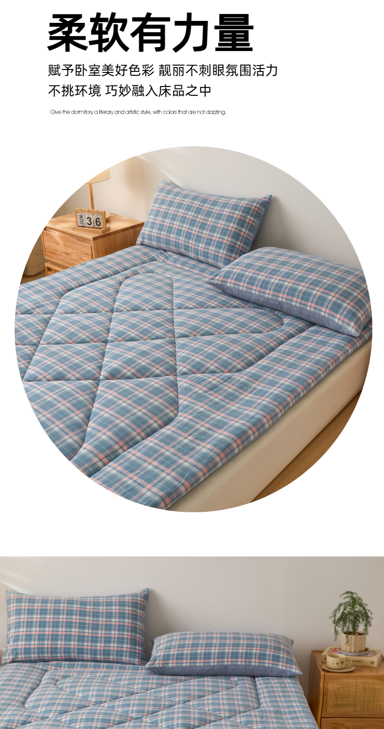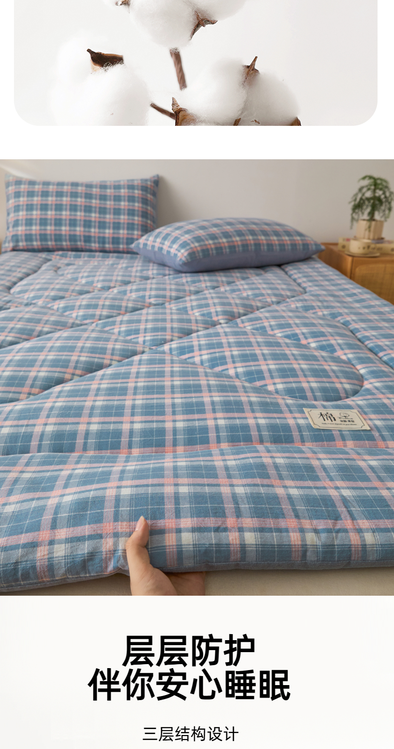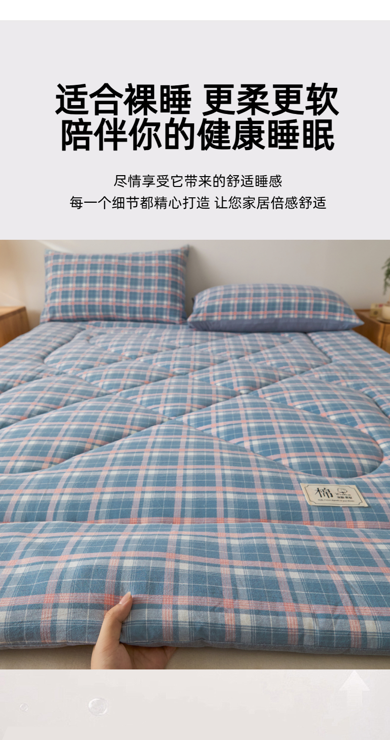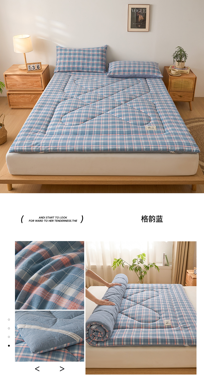 • 91家纺网 家纺一手货源 找家纺 爱屋及屋 2025新款无印风四季款棉花床垫 格韵蓝