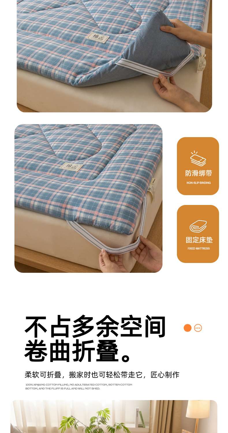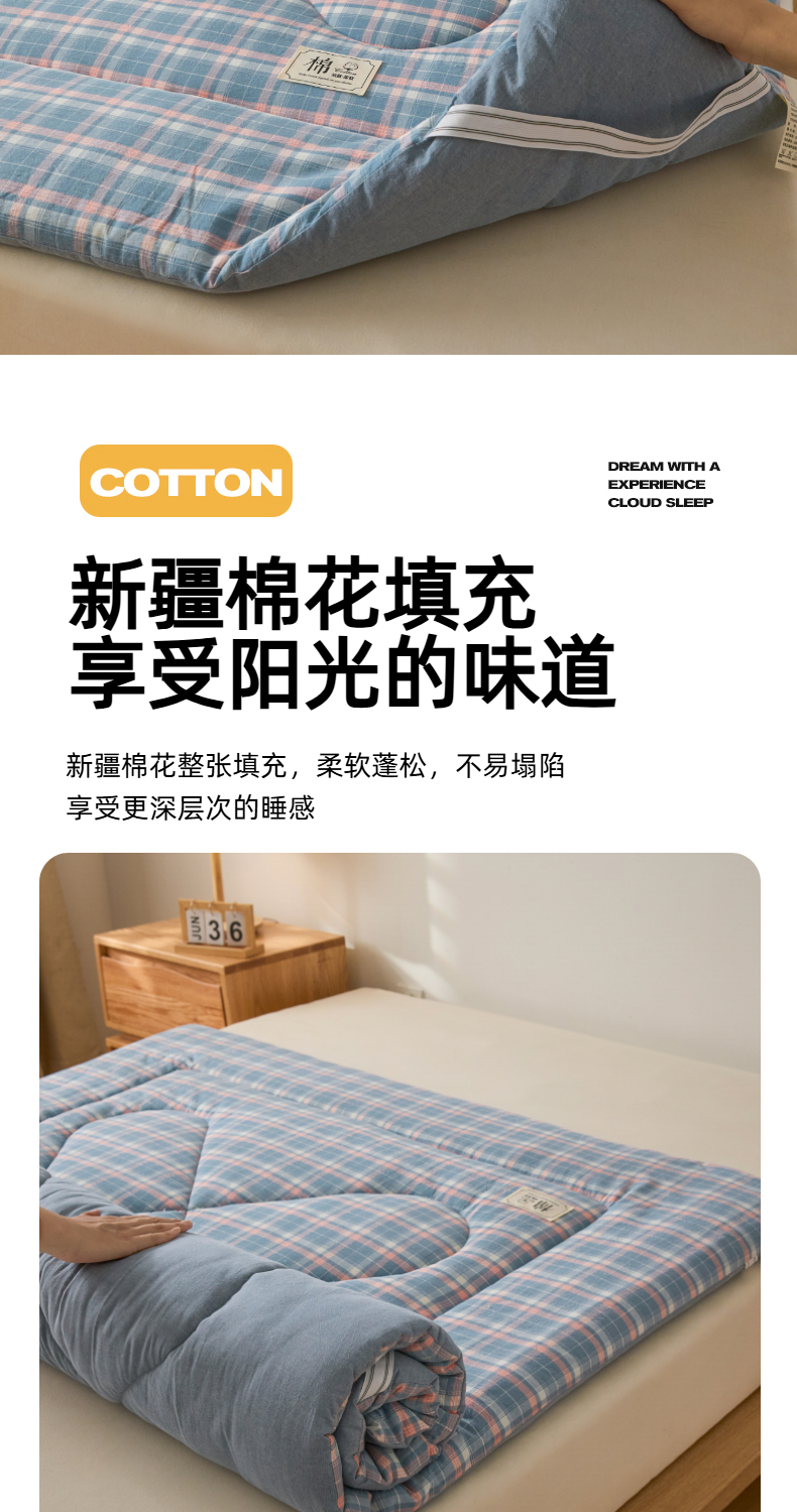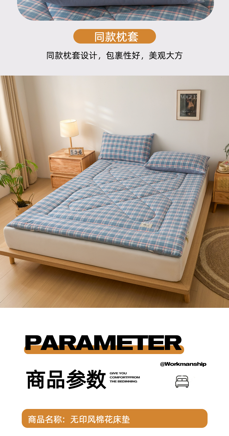• 91家纺网 家纺一手货源 找家纺 爱屋及屋 2025新款无印风四季款棉花床垫 格韵蓝