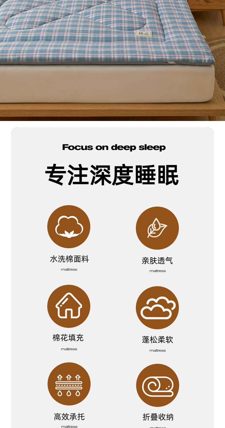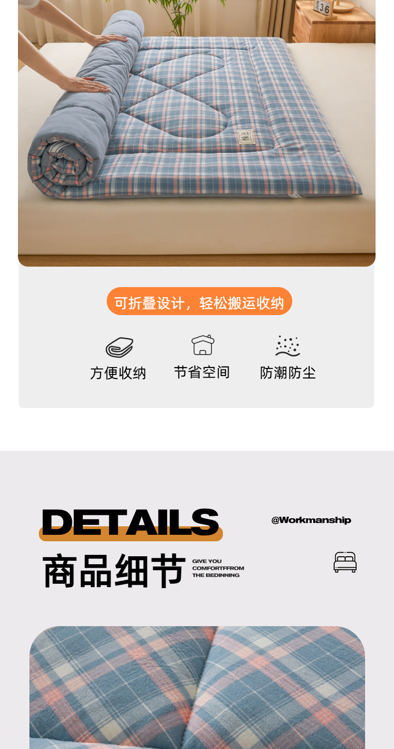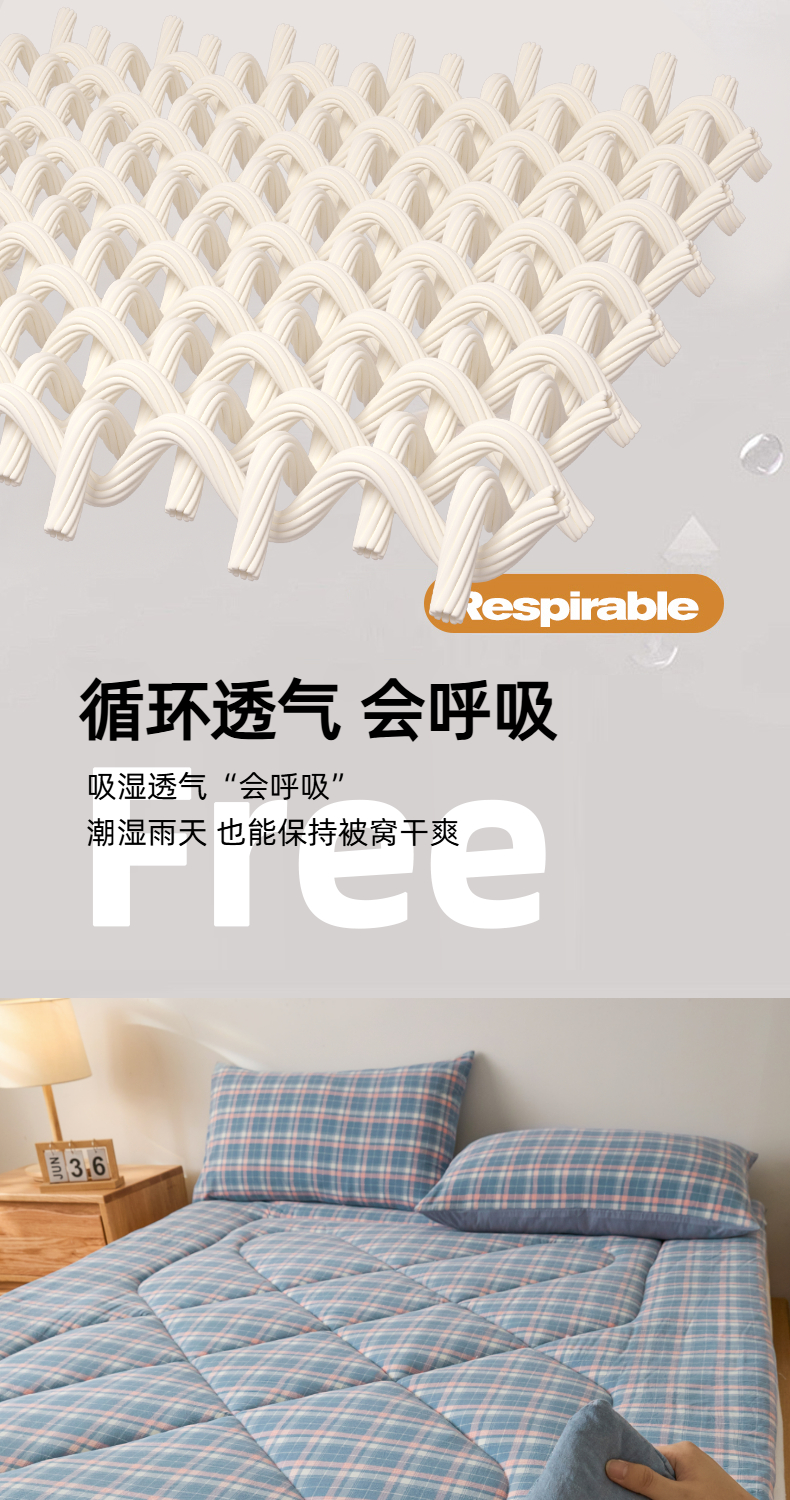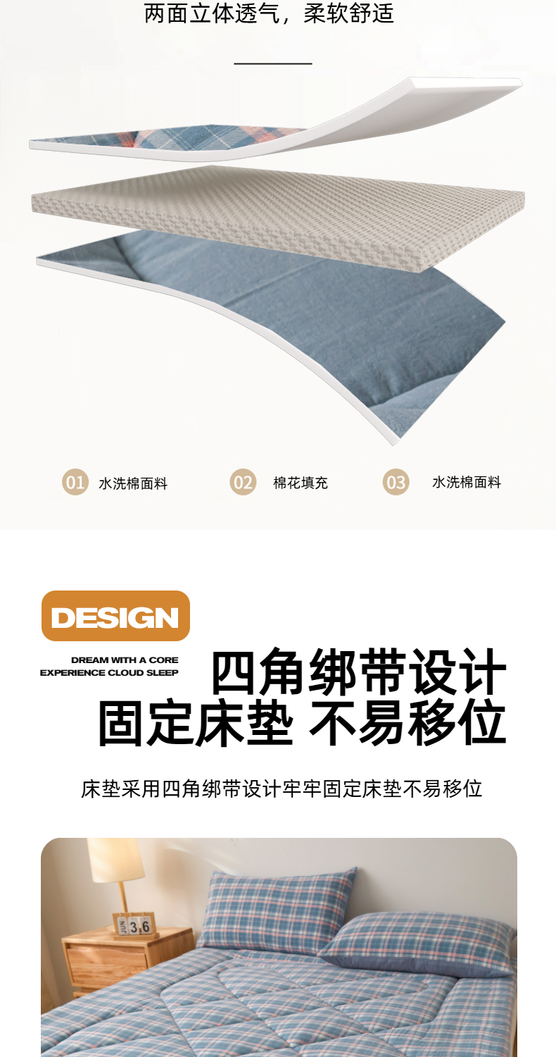 • 91家纺网 家纺一手货源 找家纺 爱屋及屋 2025新款无印风四季款棉花床垫 格韵蓝
