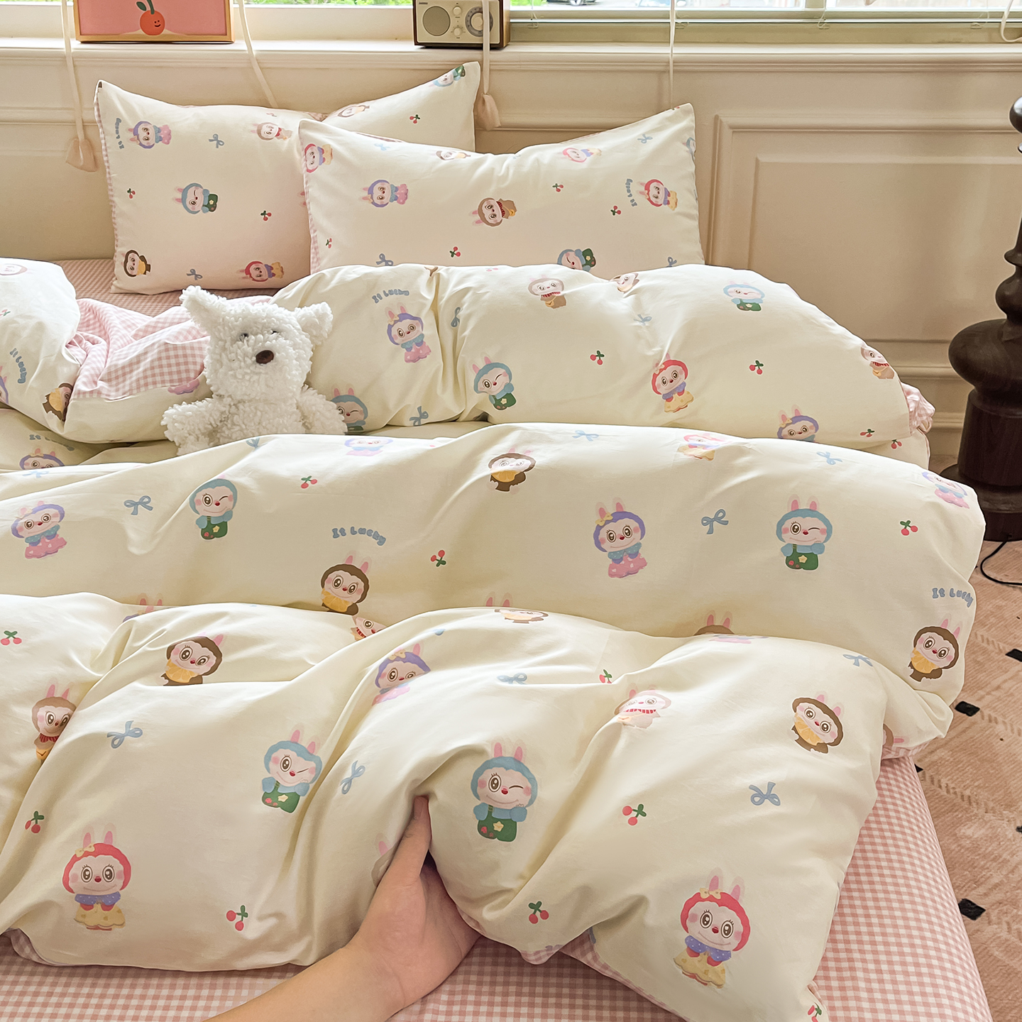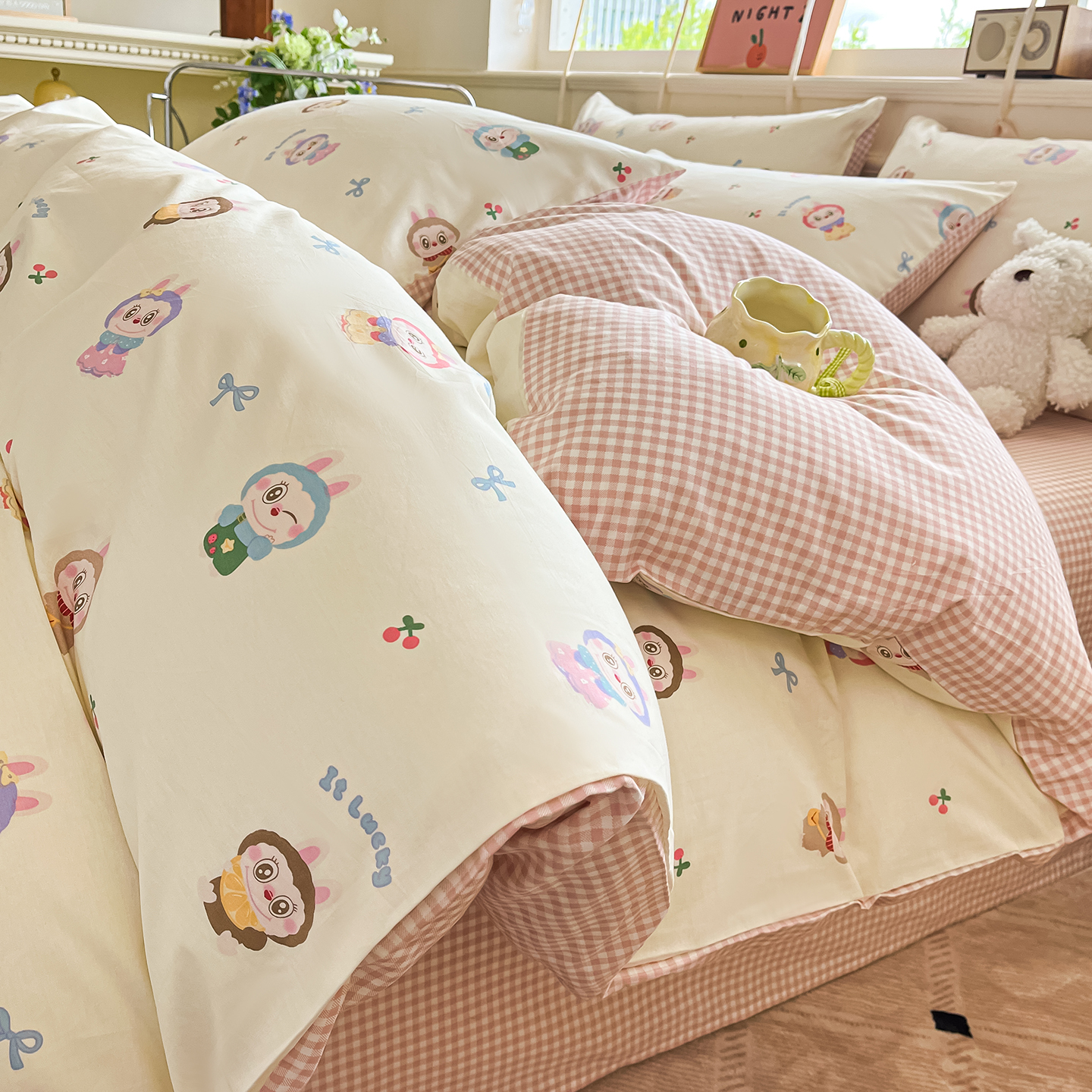 当前位置: 91家纺网 > 商品网购 > 床品套件 > 四件套 > 全棉普通四件套 > 麦伦家居 2025春夏新款全棉纯棉斜纹40s13372系列-小清新卡通 咘咘