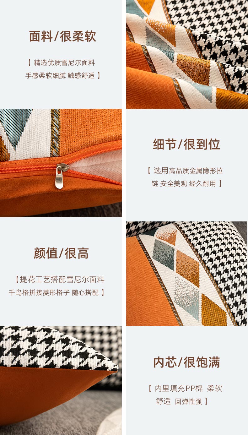 商品名称:新奇异 2025新款仿超柔雪尼尔提花千鸟格方块抱枕 千鸟格方块-驼色