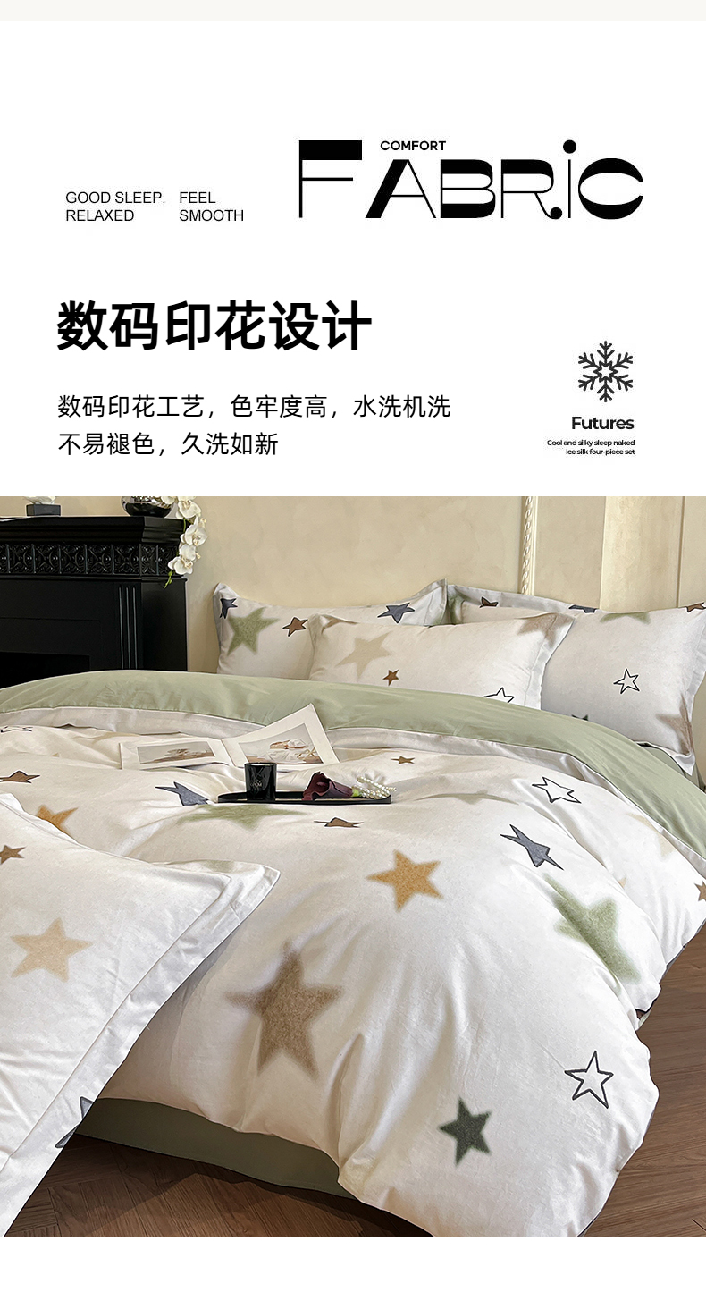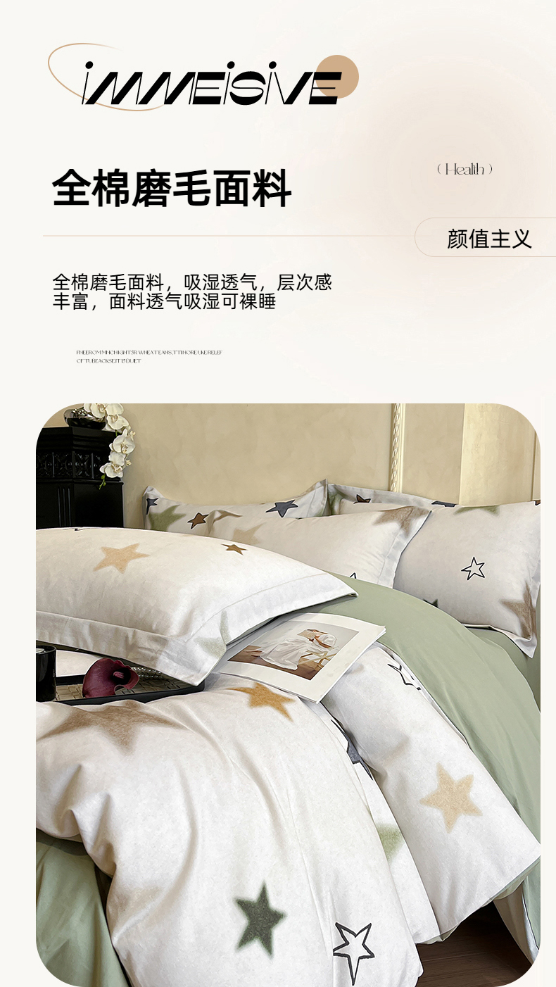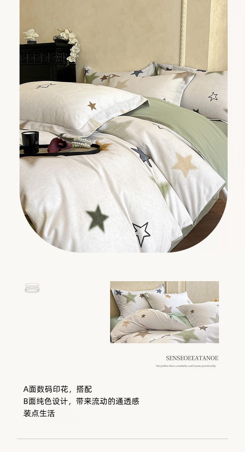 当前位置: 91家纺网 > 商品网购 > 床品套件 > 四件套 > 全棉普通四件套 > 禾时 2025新款全棉超柔数码印花磨毛四件套(32x21磨毛) 星彩(绿)