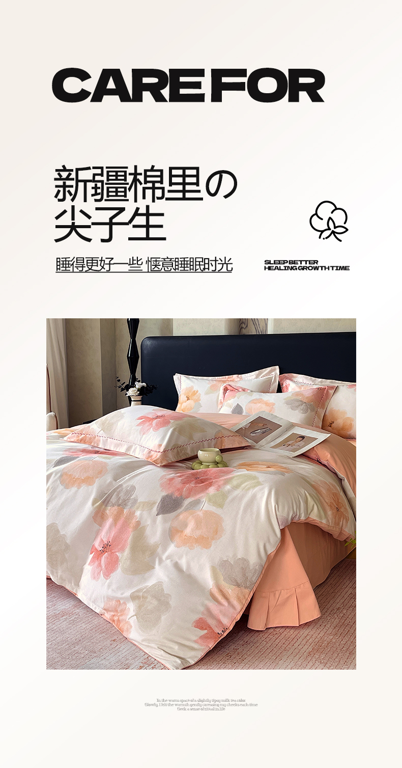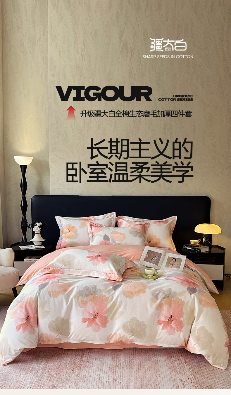 慕希家纺 2025新款疆大白全棉纯棉加厚生态磨毛四件套 夕雾