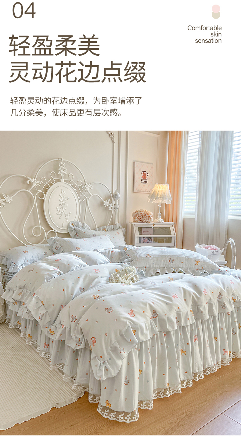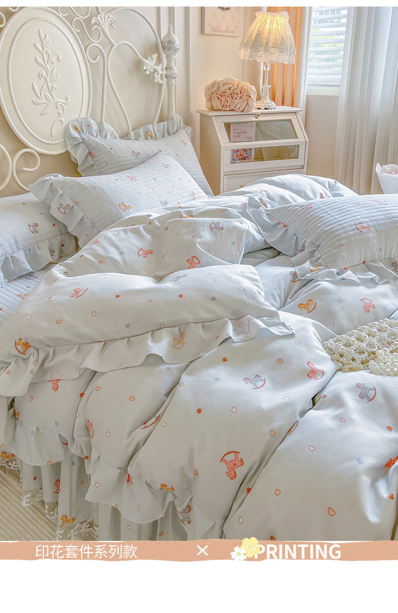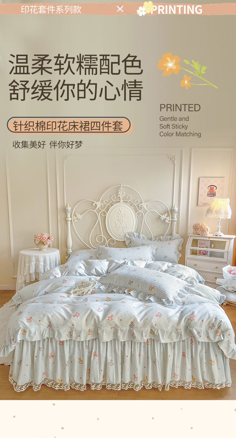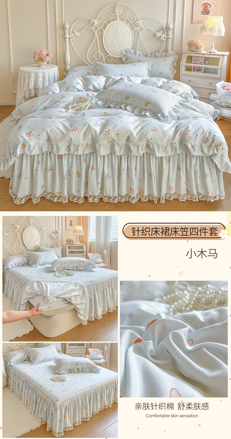网红馆(ck家纺)2025新款针织印花床裙四件套 小木马