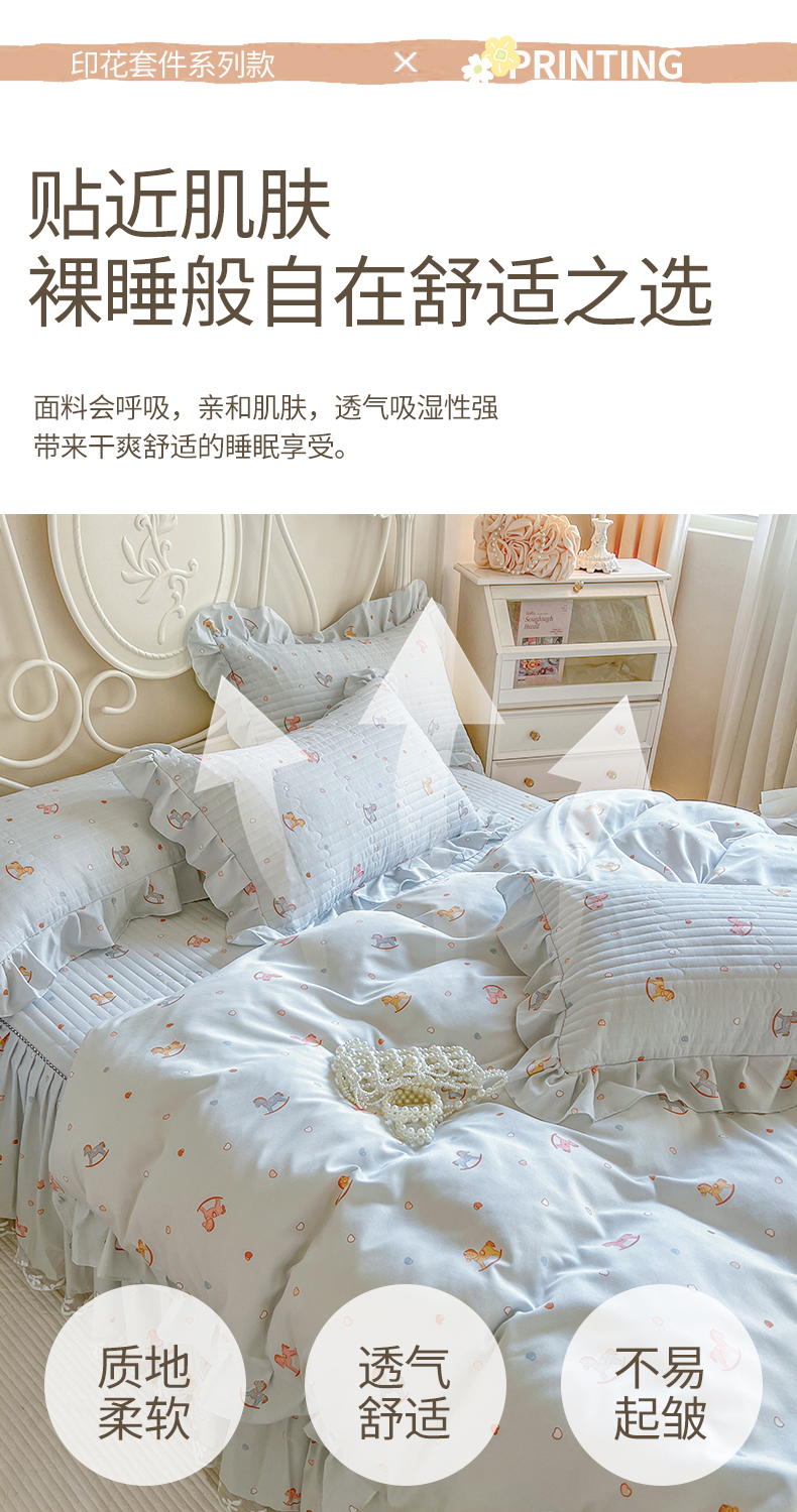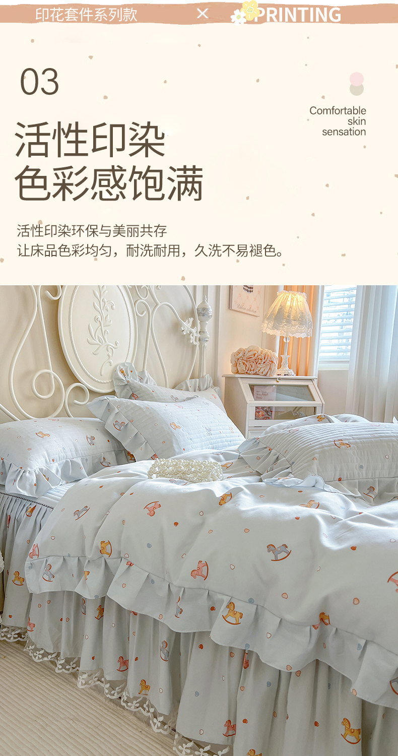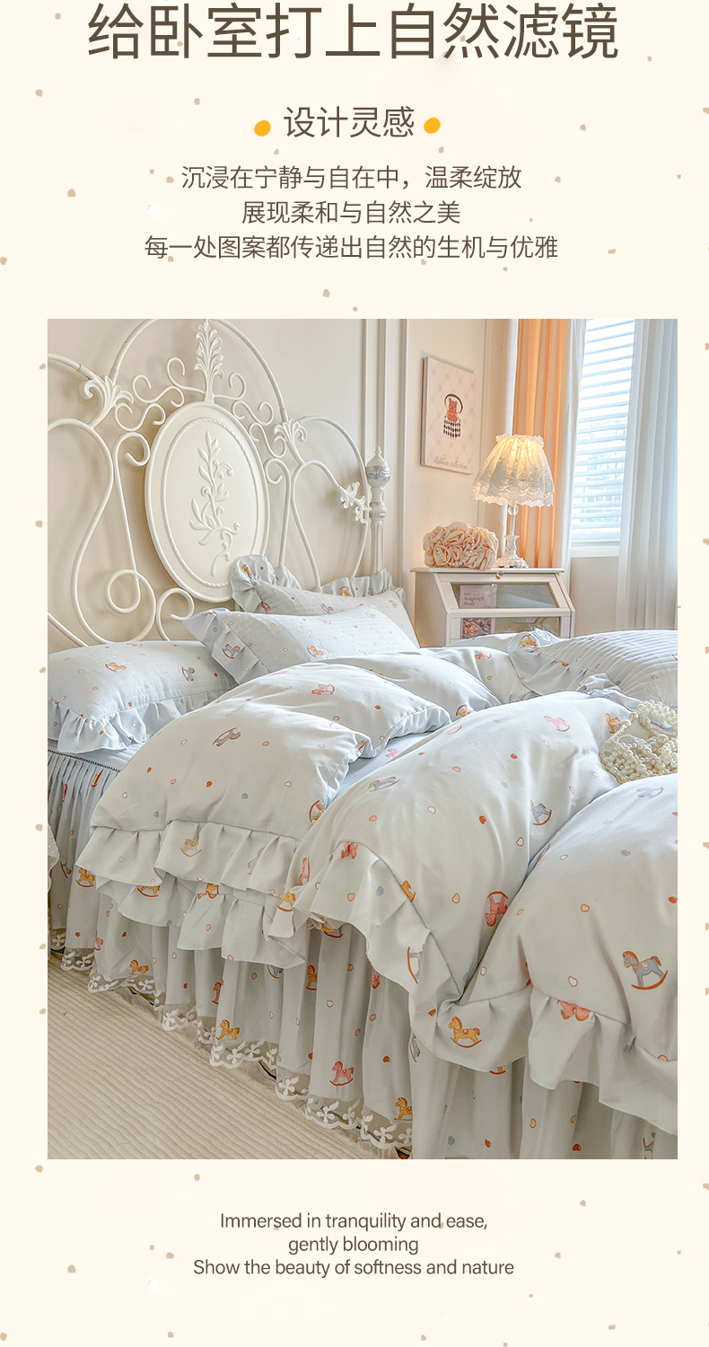 商品名称:网红馆(ck家纺)2025新款针织印花床裙四件套 小木马