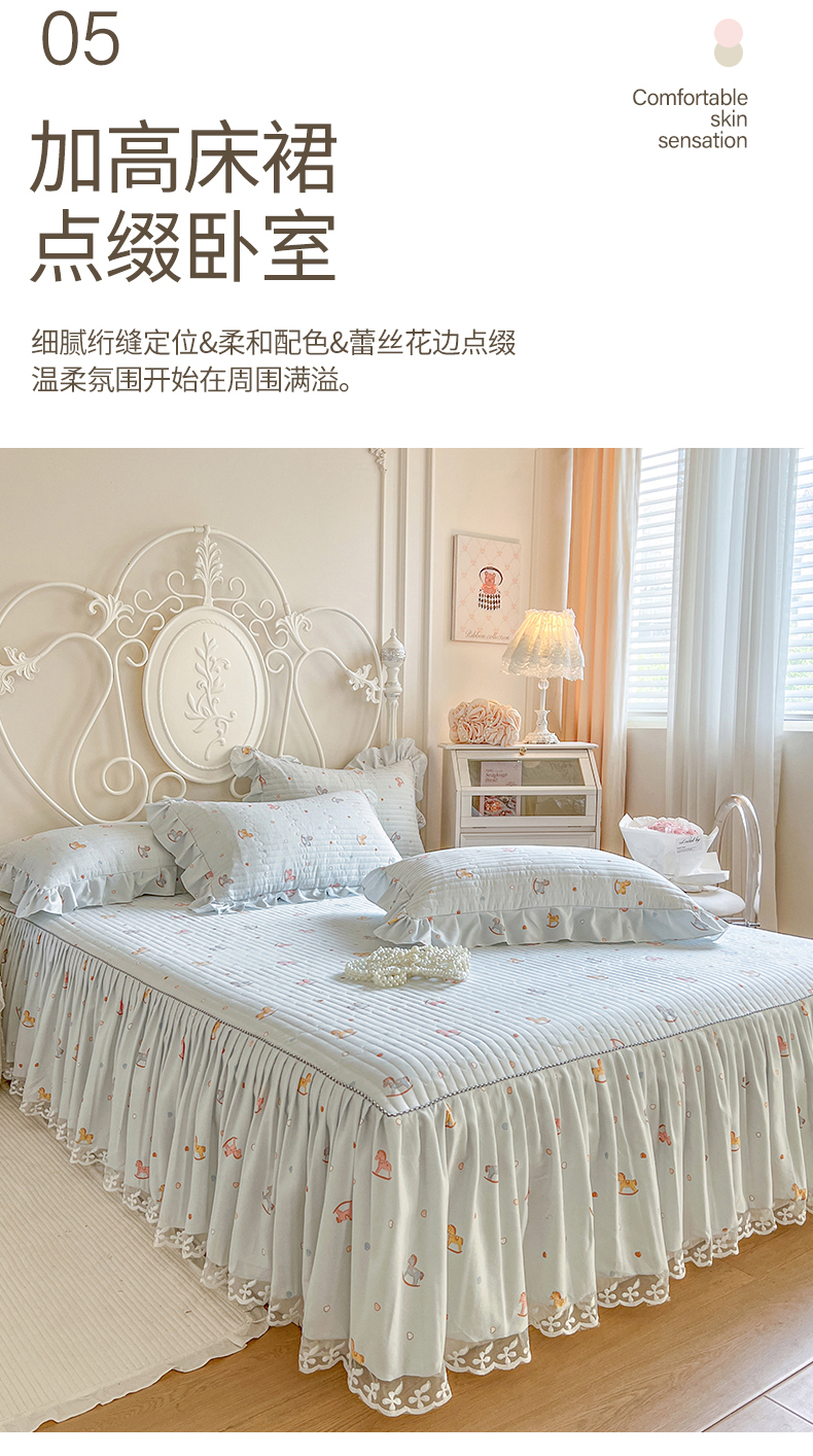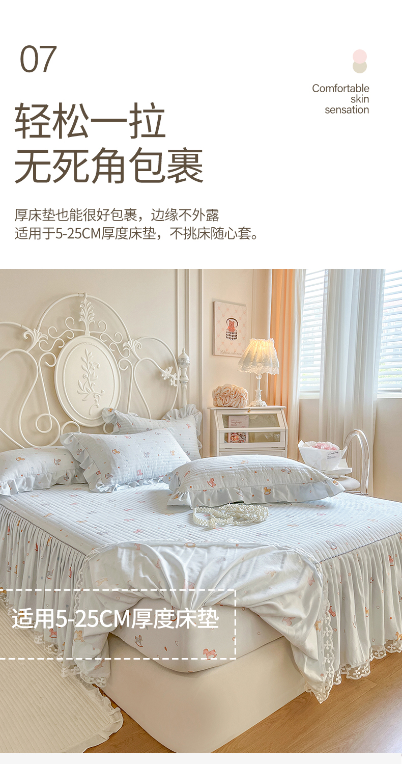 (总)网红馆(ck家纺) 2026新款全棉蕾丝花边床裙款床笠晨暮花间系列,绯红,粉色,麦绿,米色,浅紫,雾蓝