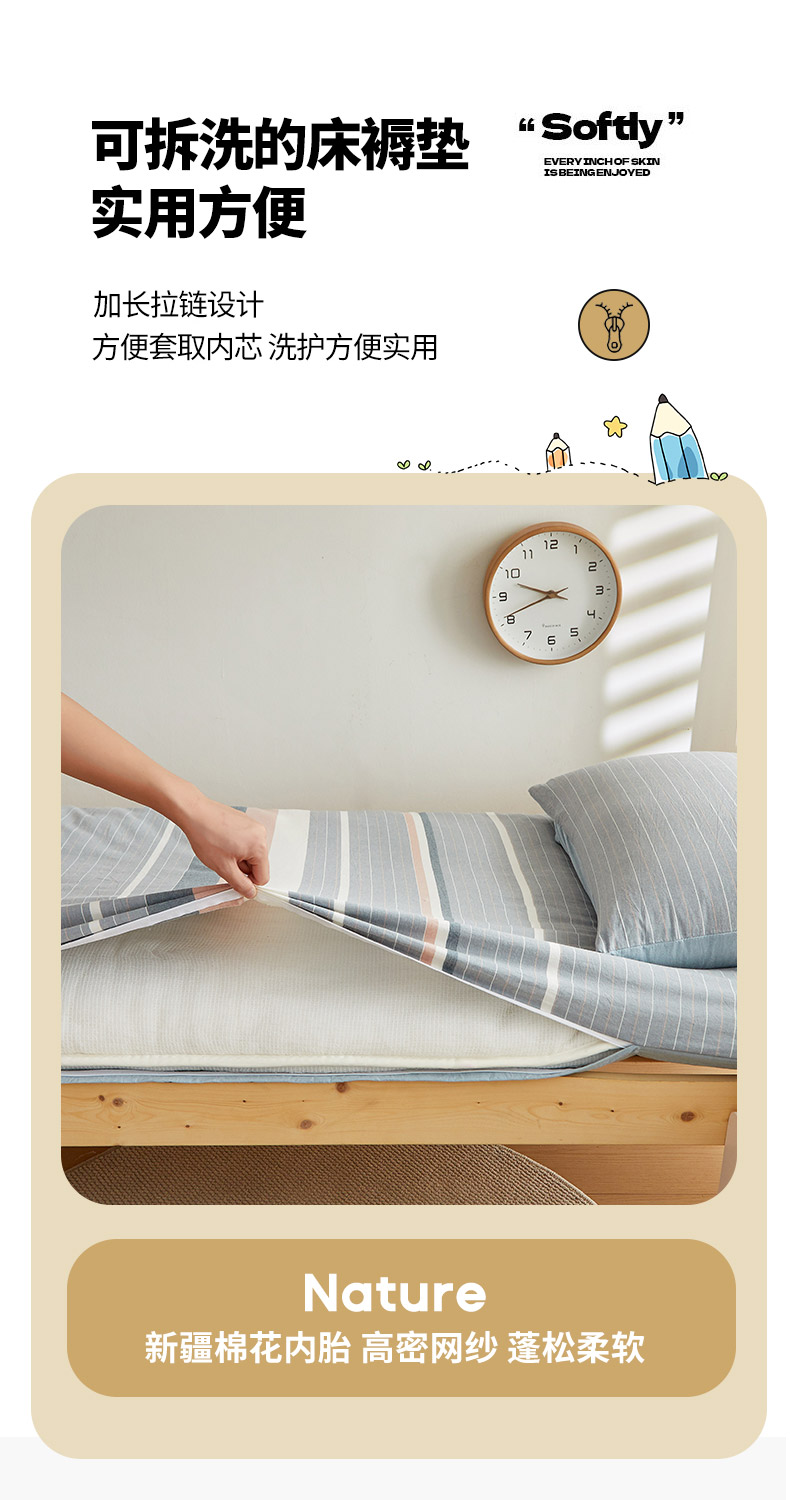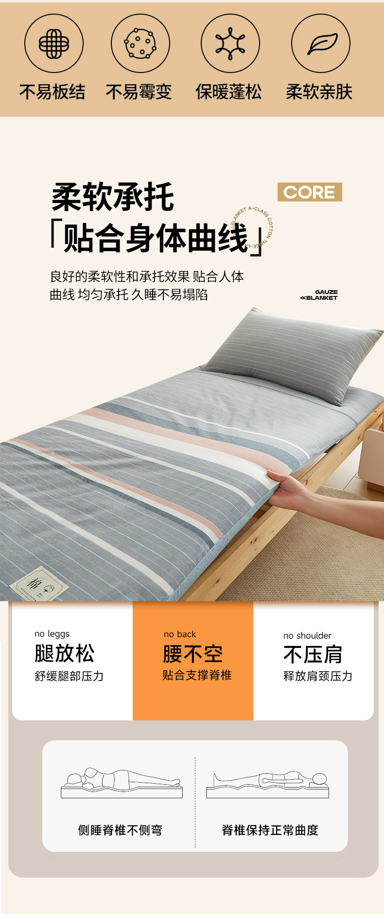 当前位置: 91家纺网 > 商品网购 > 床垫/床褥 > 普通床垫 > 2024新款水洗棉可拆洗棉花学生床垫床褥垫褥子床垫 流年灰