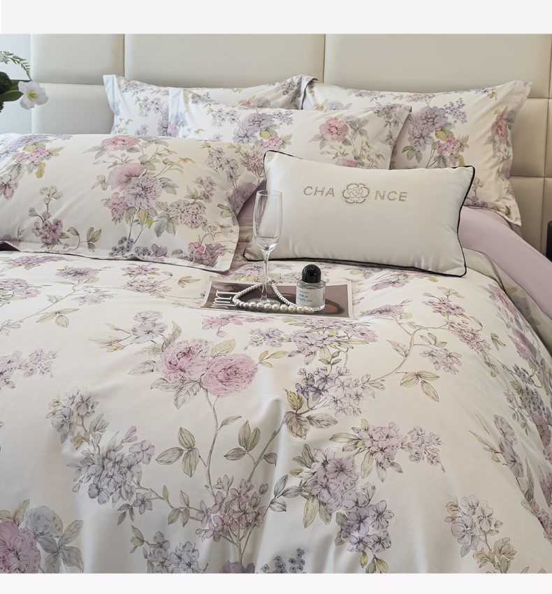 (总)洺兰家居 2026年新疆长绒棉100支天丝棉高端工艺款床单床笠四件套床上用品,淡若清香,陌上花开,羽墨